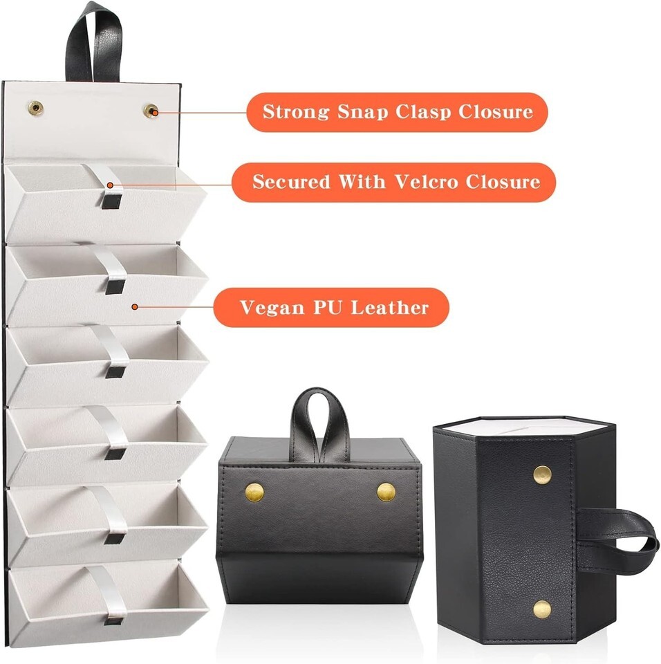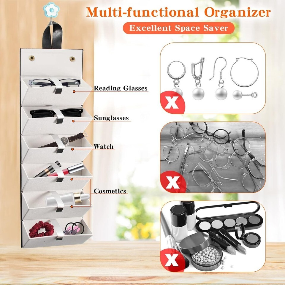 Foldable and Portable: This lightweight organizer can accommodate up to 6 eyeglasses, neatly folding into a compact box that features a handy strap for effortless carrying.