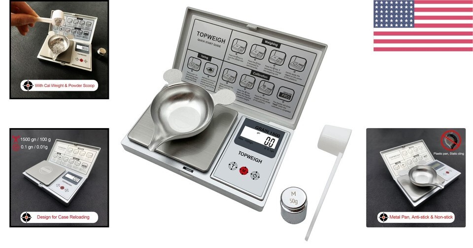 Metal Powder Pan: Equipped with a non-stick metal weighing pan, our reloading grain scale eliminates the hassle of cling with other plastic weighing pans. This essential feature ensures precise measurements, making it a must-have for reloaders.