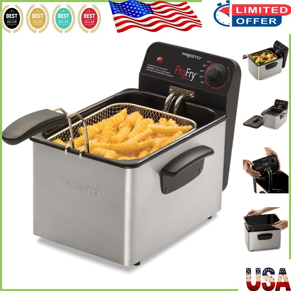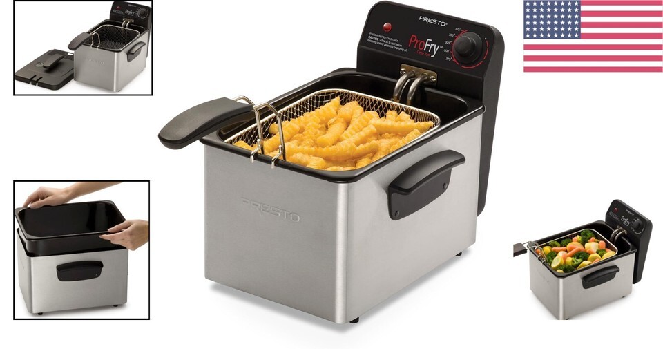 - Compact Silver Stainless Steel Deep Fryer with Removable Pot & Basket