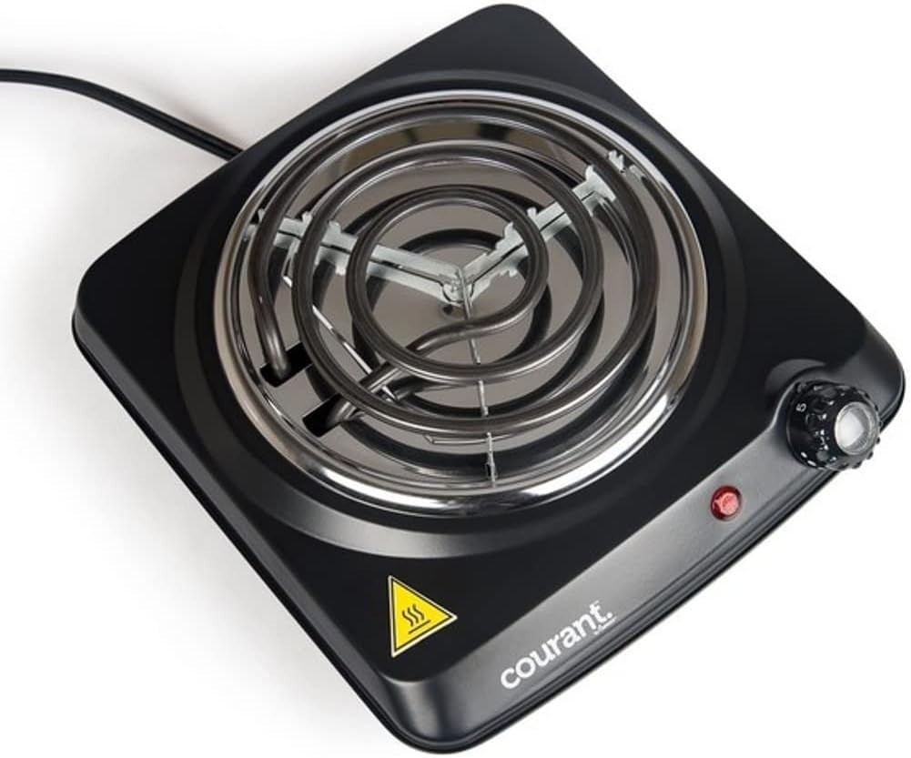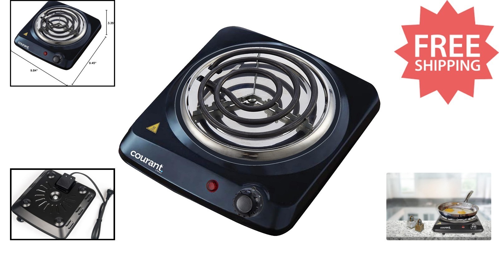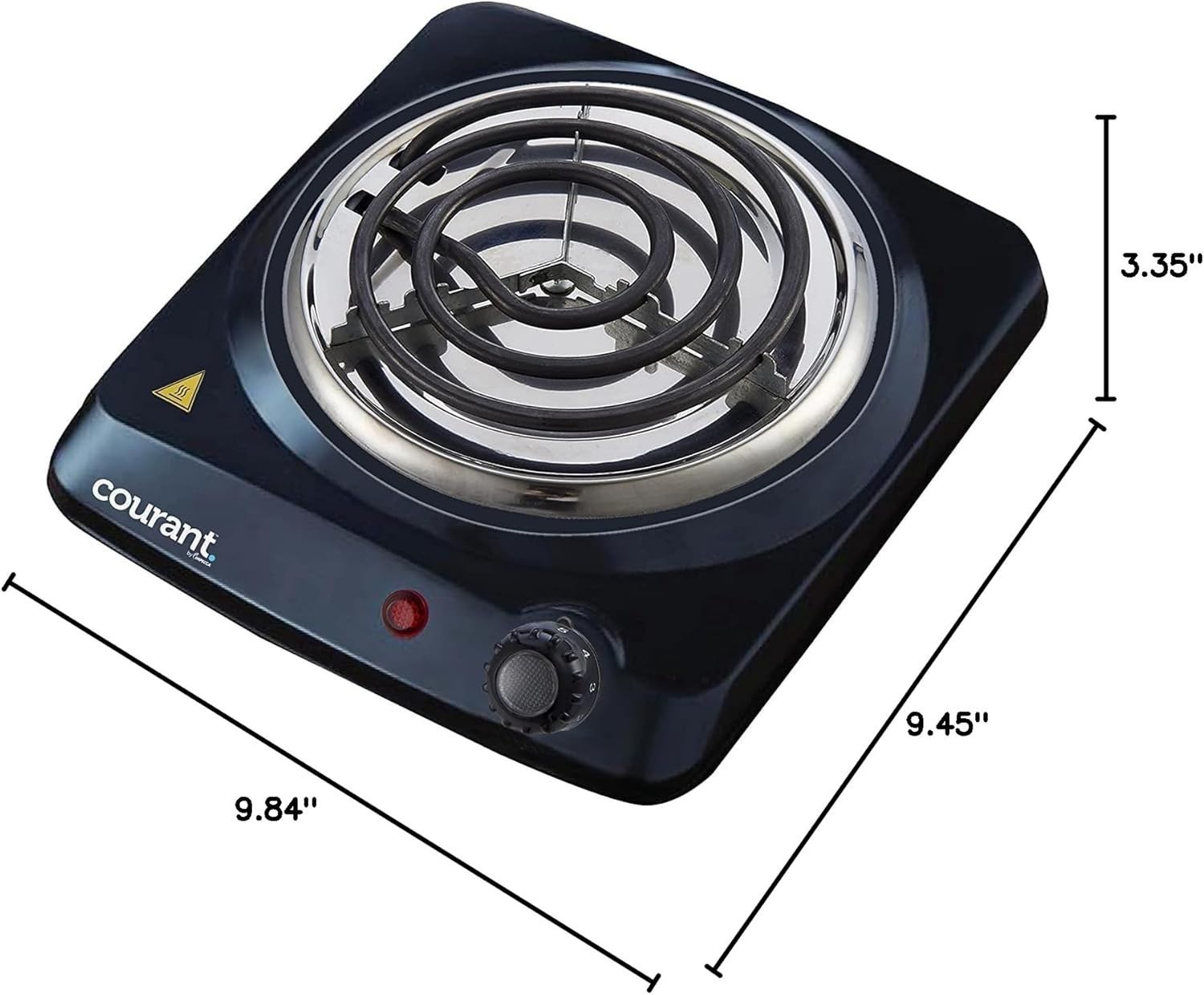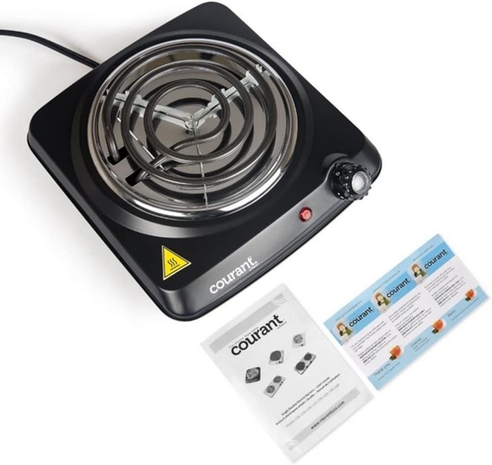 Discover the ultimate versatile cooking solution with the Courant Black Coil Burner. Perfect for students, offices, camping trips, RVs, holiday homes, and entertaining, this compact appliance fits seamlessly into any small space without a traditional stovetop. Equipped with a 6.1-inch large cooking plate, 1000 watts of power, and a quick heat-up feature, it delivers consistent high heat for all your cooking needs. The durable, coil-less cast iron plates are easy to wipe clean, while the stainless steel design adds a touch of elegance. Features include a temperature regulating thermostat, power indicator light, automatic safety shut-off, skid-proof rubber feet, and a space-saving slim profile. Whether at home, at the office, or outdoors, cook with confidence and flexibility.