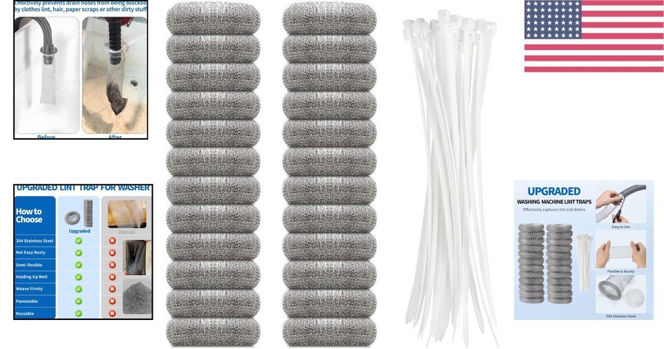 Compact Stainless Steel Lint Traps for Washing Machines - Prevent Clogs Easily