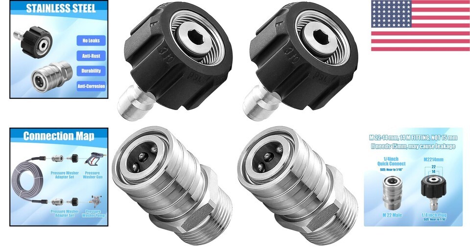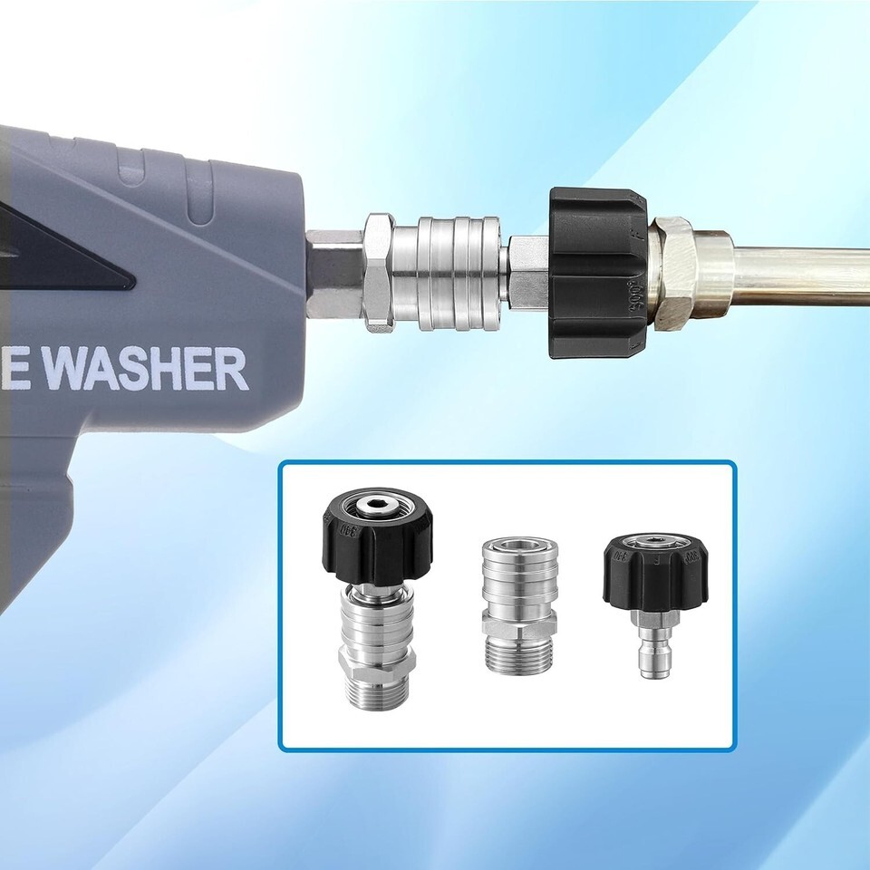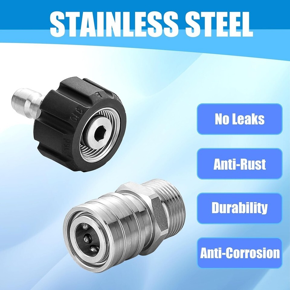 - Compact Stainless Steel Pressure Washer Adapters - 5000 PSI M22 to 1/4'' Set