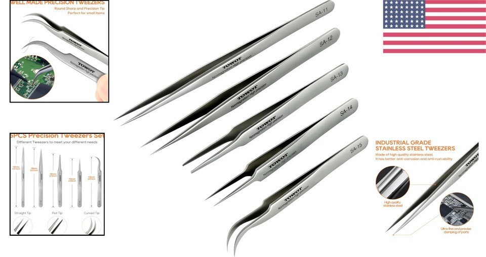 - Compact Stainless Steel Tweezers – 5 Precision Variants for All Crafting Needs