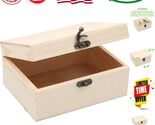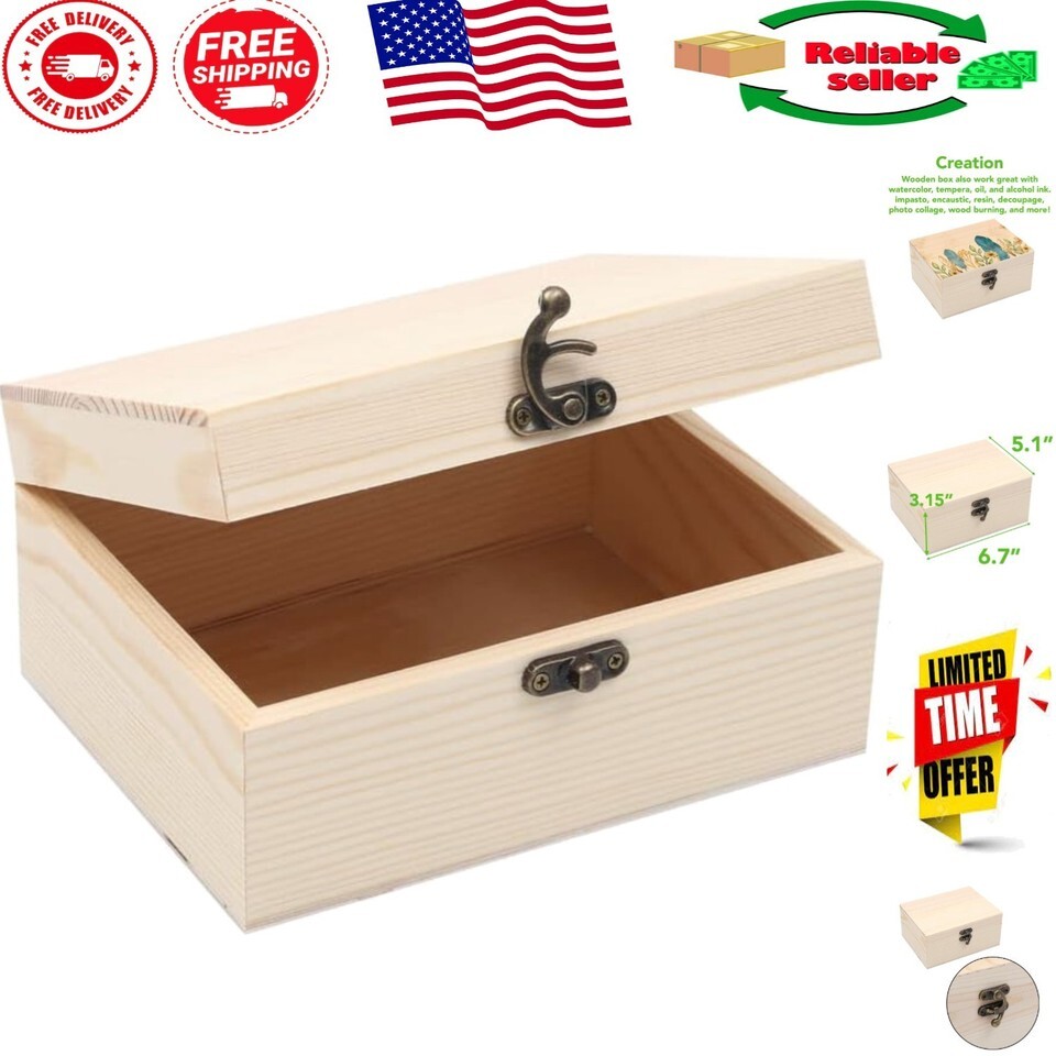Compact Unpainted Wooden Box with Durable Hinged Lid - Perfect for DIY Crafts