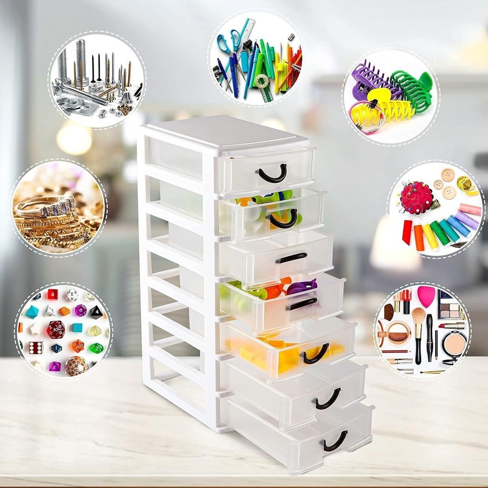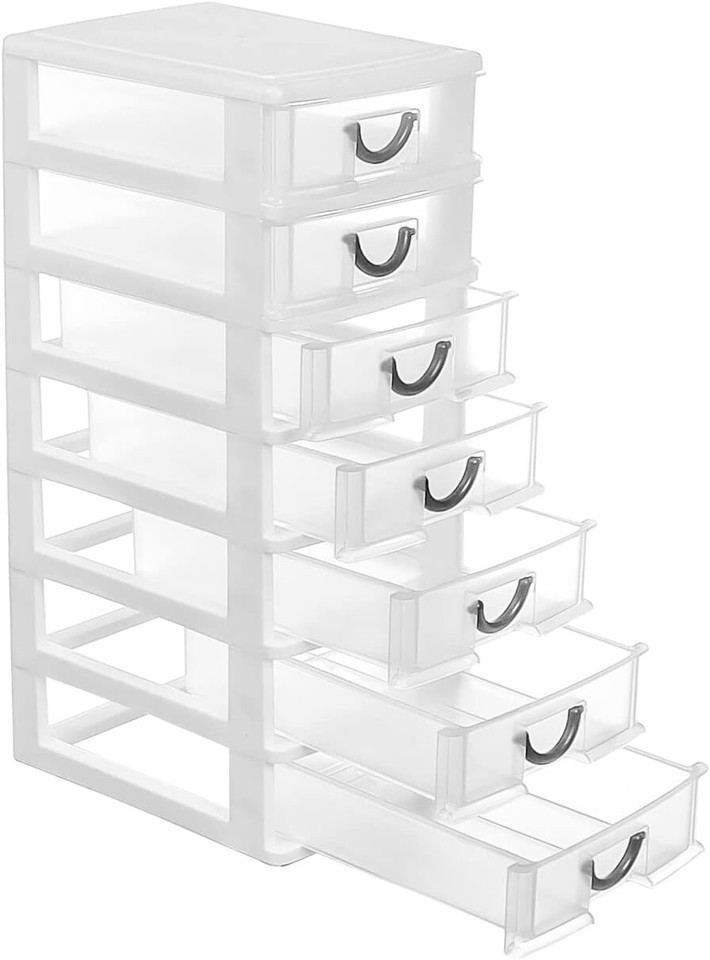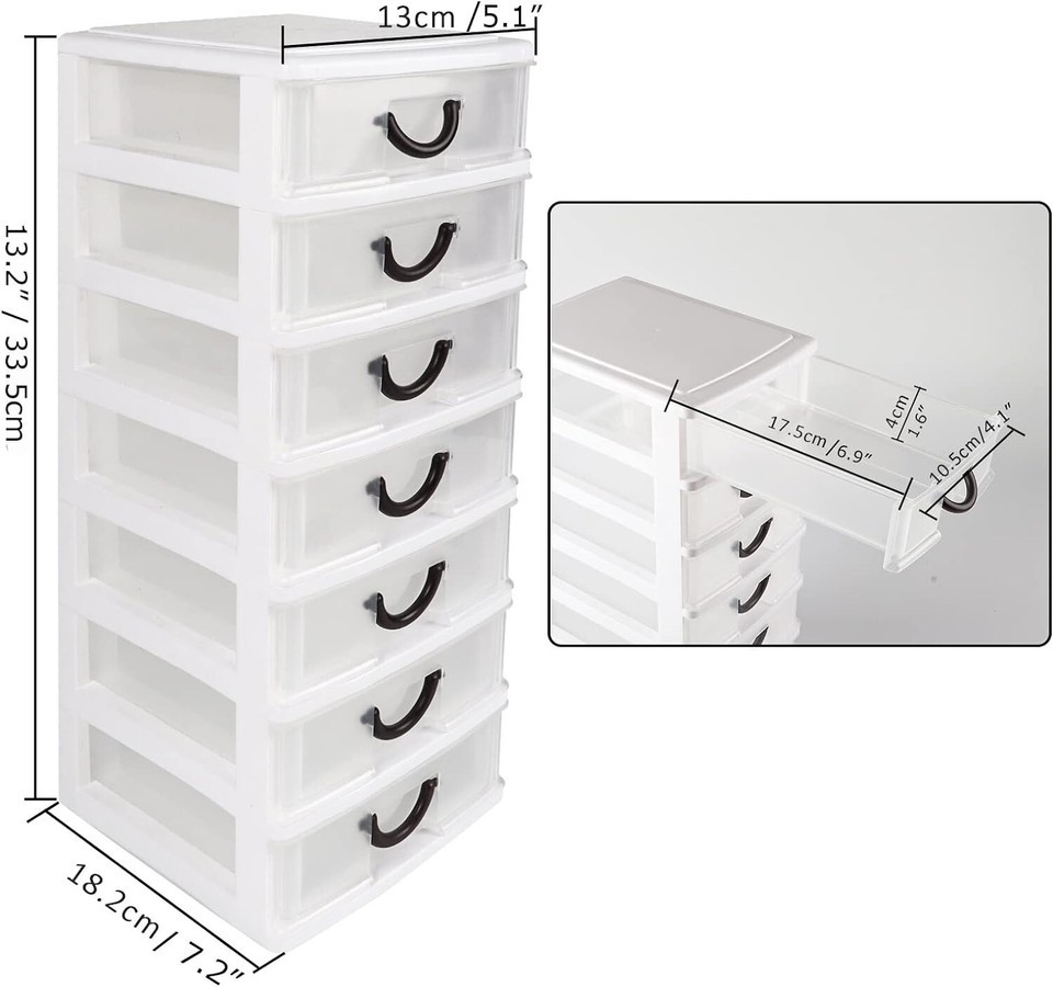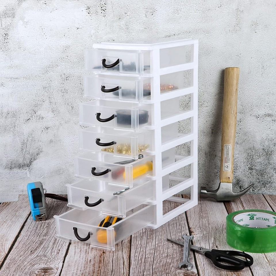 Compact White Mini Storage Box with 7 Clear Drawers - Ideal for Craft Supplies