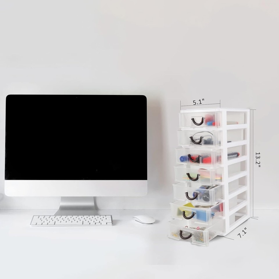 Transform your organization game with this elegant Compact White Mini Storage Box, featuring 7 Clear Drawers designed to accommodate your every need.