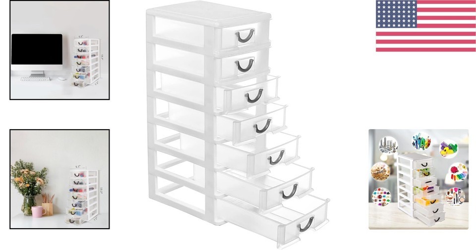 - Compact White Mini Storage Box with 7 Clear Drawers - Ideal for Craft Supplies