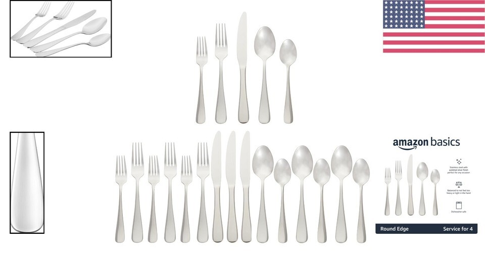 - Complete 20-Piece Silverware Set for 4 – Stain-Resistant & Dishwasher Safe