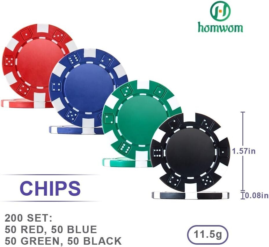 High Quality Poker Chips: Crafted from superior materials, our chips reflect professional casino style with exquisite pattern details and an excellent feel.