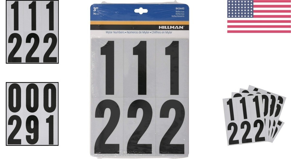 Complete 3" Reflective Mailbox Number Set - Durable, Self-Adhesive, Black/White