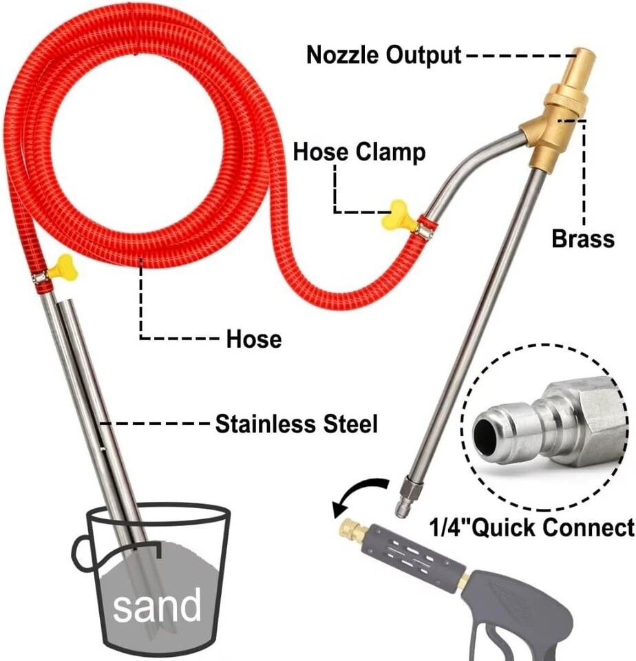 Elevate your cleaning capabilities with our Complete Sandblasting System designed specifically for pressure washers. Built with high-quality materials and designed for optimal performance, this kit is your go-to solution for rust removal, paint stripping, and more. Don't compromise on quality; invest in a powerful cleaning system that will exceed your expectations and deliver outstanding results.