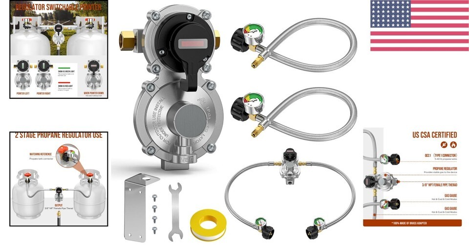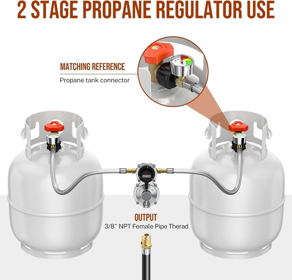 - Comprehensive 2-Stage Propane Regulator Kit for RVs - 18" Hose & Tools Included