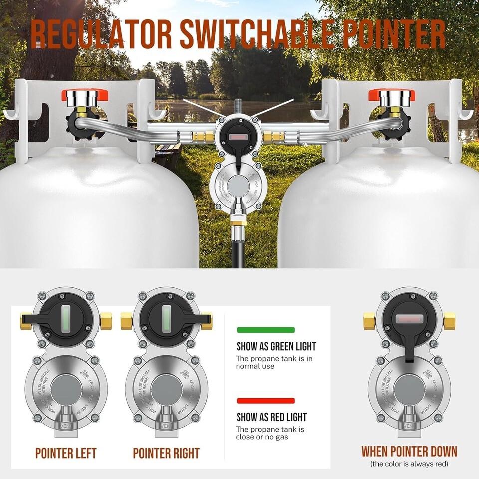 Perfectly designed for RVs, campers, and travel trailers with dual propane tanks.
