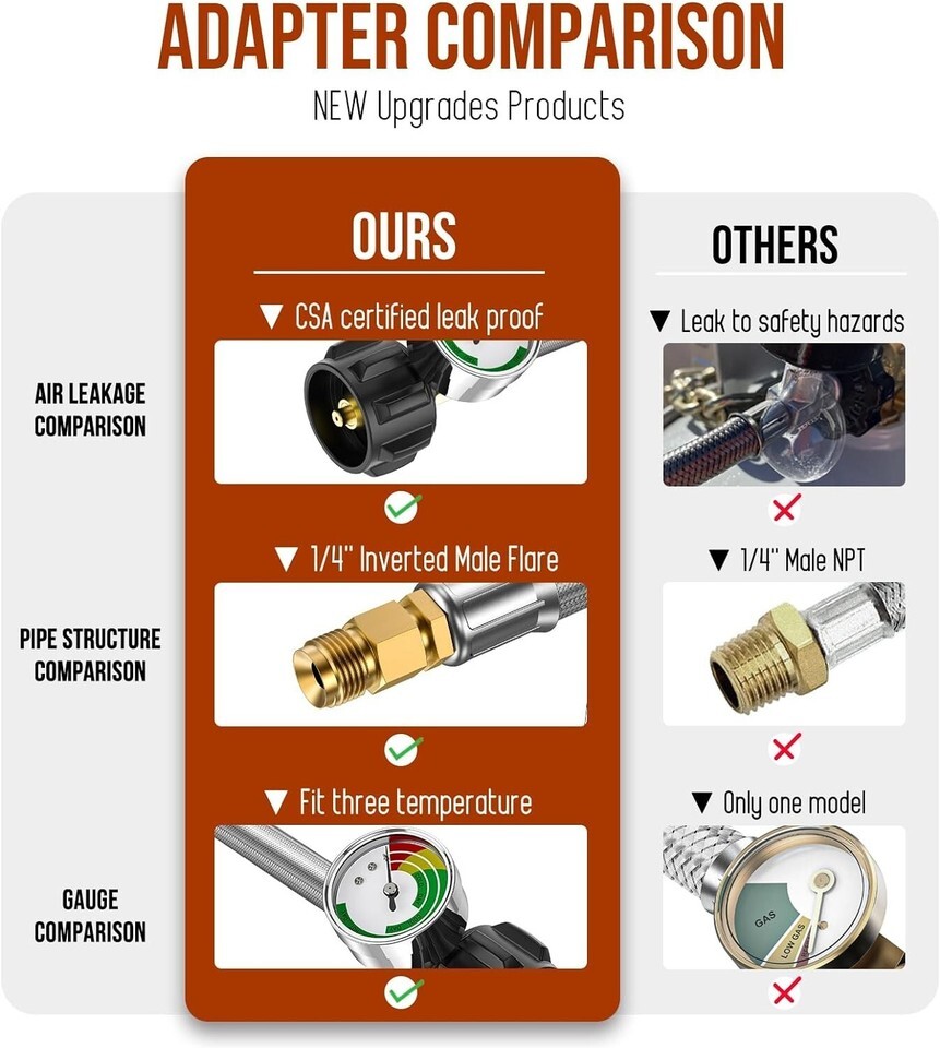 The stainless steel braided RV pigtail propane hose guarantees airtightness and stability.
