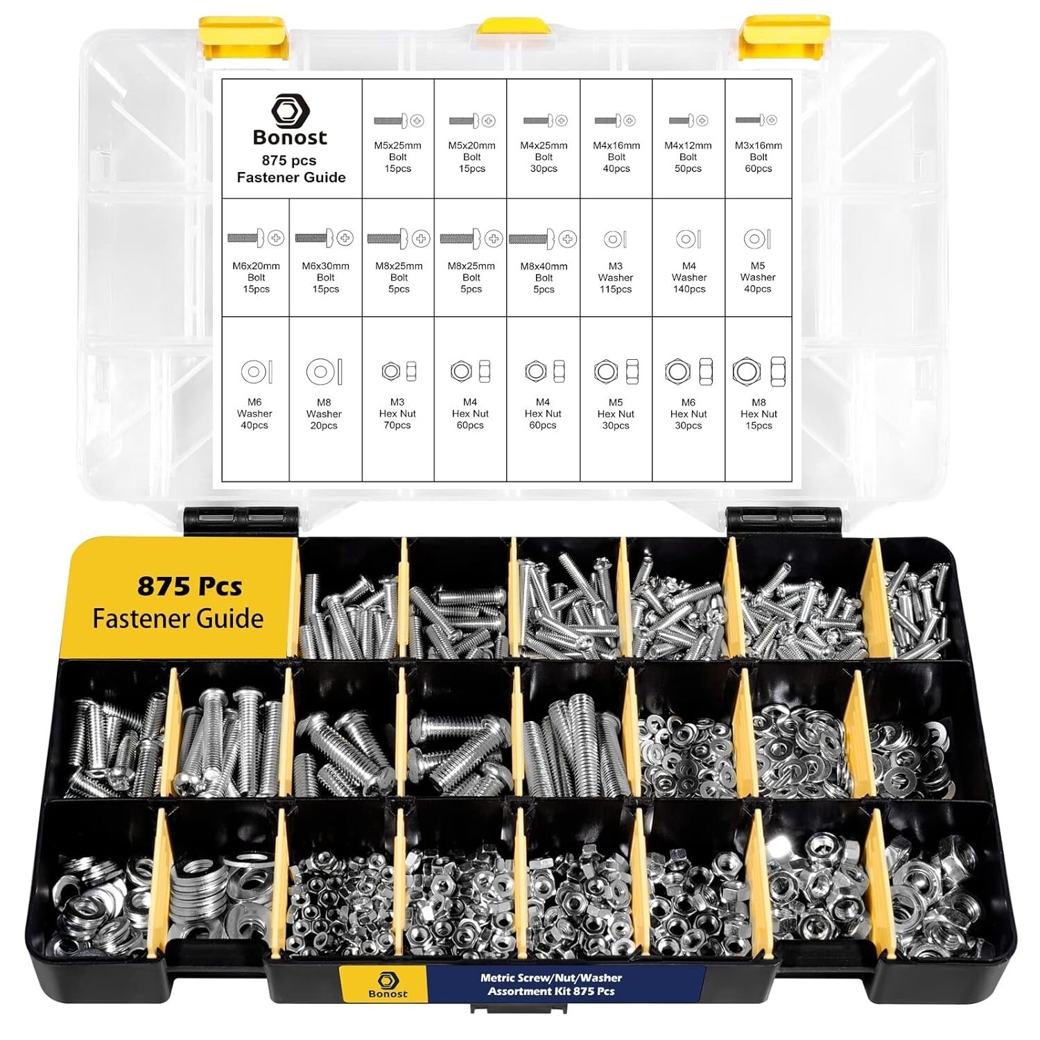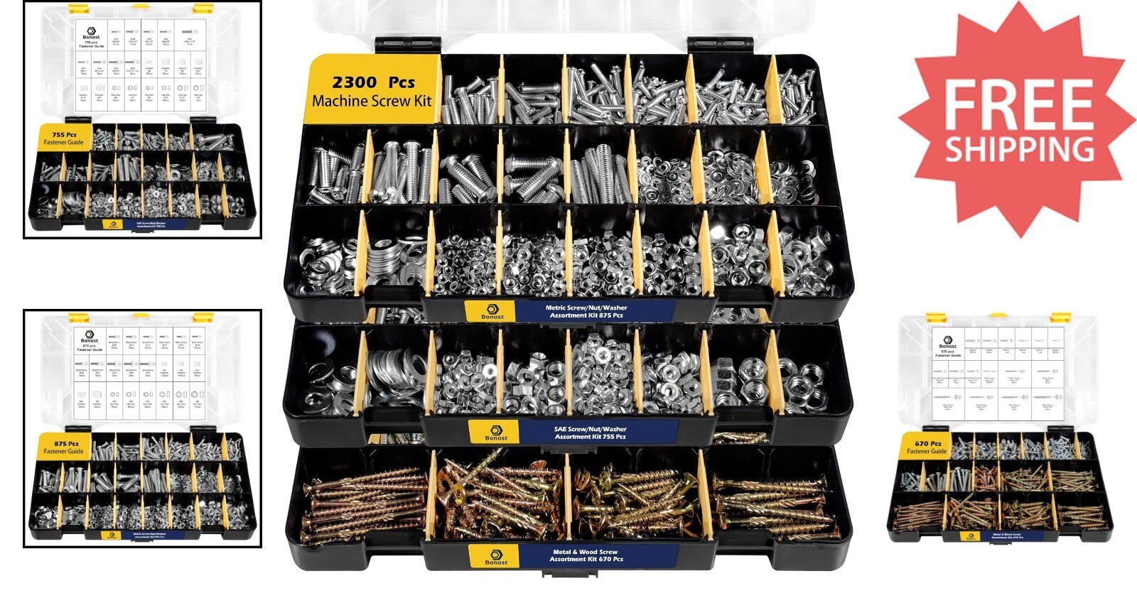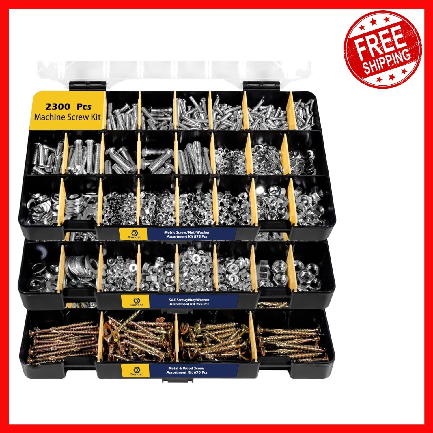 Discover our comprehensive 2240-piece hardware assortment kit, perfect for both professional and hobbyist projects. This set includes a diverse range of SAE and metric nuts, bolts, washers, and screws crafted from high-quality, corrosion-resistant carbon steel with zinc coatings for added durability. Organized in sturdy, stackable cases with an easy-to-follow fastener guide, each item is individually packaged to prevent mixing. Whether you're repairing household items or working on DIY projects, this versatile kit is designed to meet your needs. Enjoy peace of mind with our dedicated customer service. To ensure fast and reliable delivery, we work with multiple fulfillment partners and suppliers. Depending on availability and location, your order may ship from different warehouses or arrive in packaging that varies from item to item. Tracking details are typically provided shortly after shipment, and customer satisfaction remains our top priority.