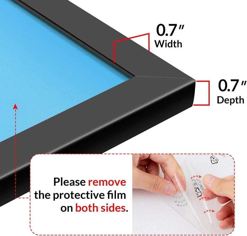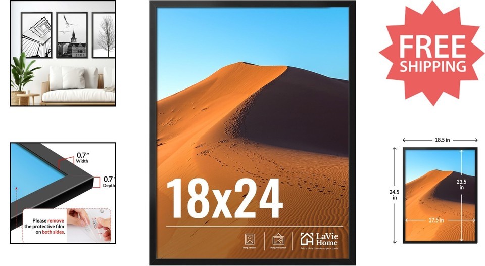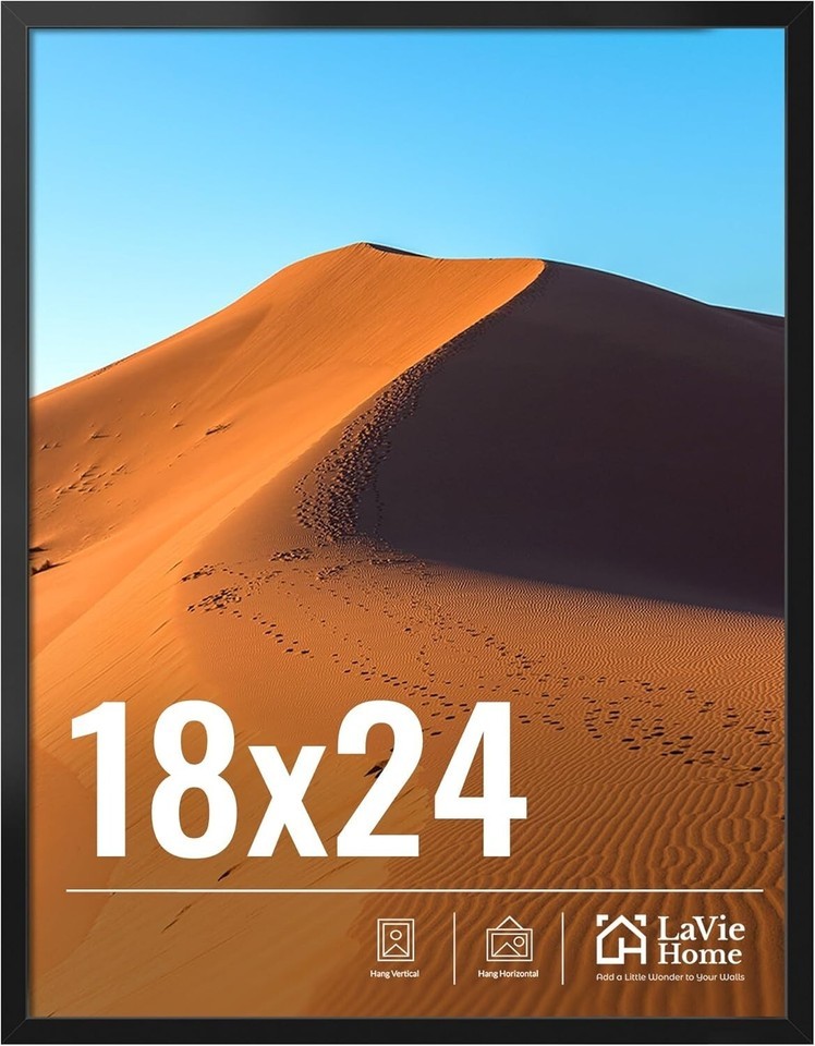This 18x24 black picture frame combines ease of use with durability and style. Its lightweight design allows for effortless vertical or horizontal wall mounting. Crafted with high-definition plexiglass, it ensures safety while providing a clear view, replacing traditional glass to prevent injuries from breakage. Packaged with protective corner guards and sealed for integrity, it?s ready to display your favorite photos once the protective film is removed. Its classic black finish complements various decor styles, making it a versatile accent piece. Ideal as a thoughtful gift for occasions like birthdays, holidays, or anniversaries, this frame is both practical and sentimental.