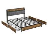 - Contemporary Full Size Bed Frame with Storage Headboard, Charging, LED