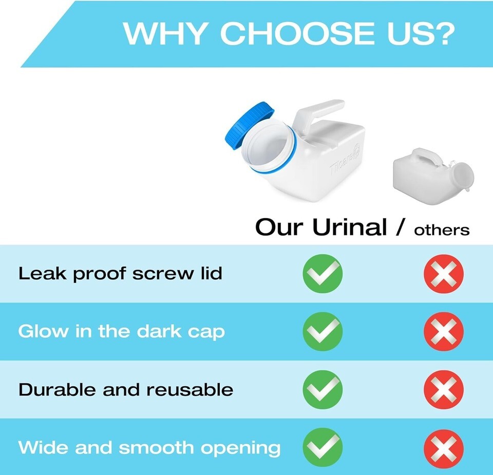 - Convenient 3-Pack Male Portable Urinals with Glow Lid - Travel Ready Solution