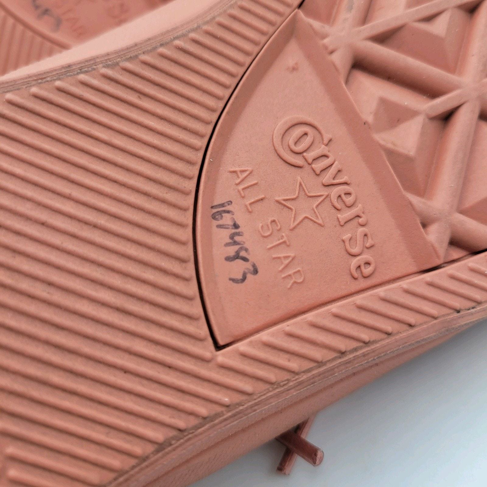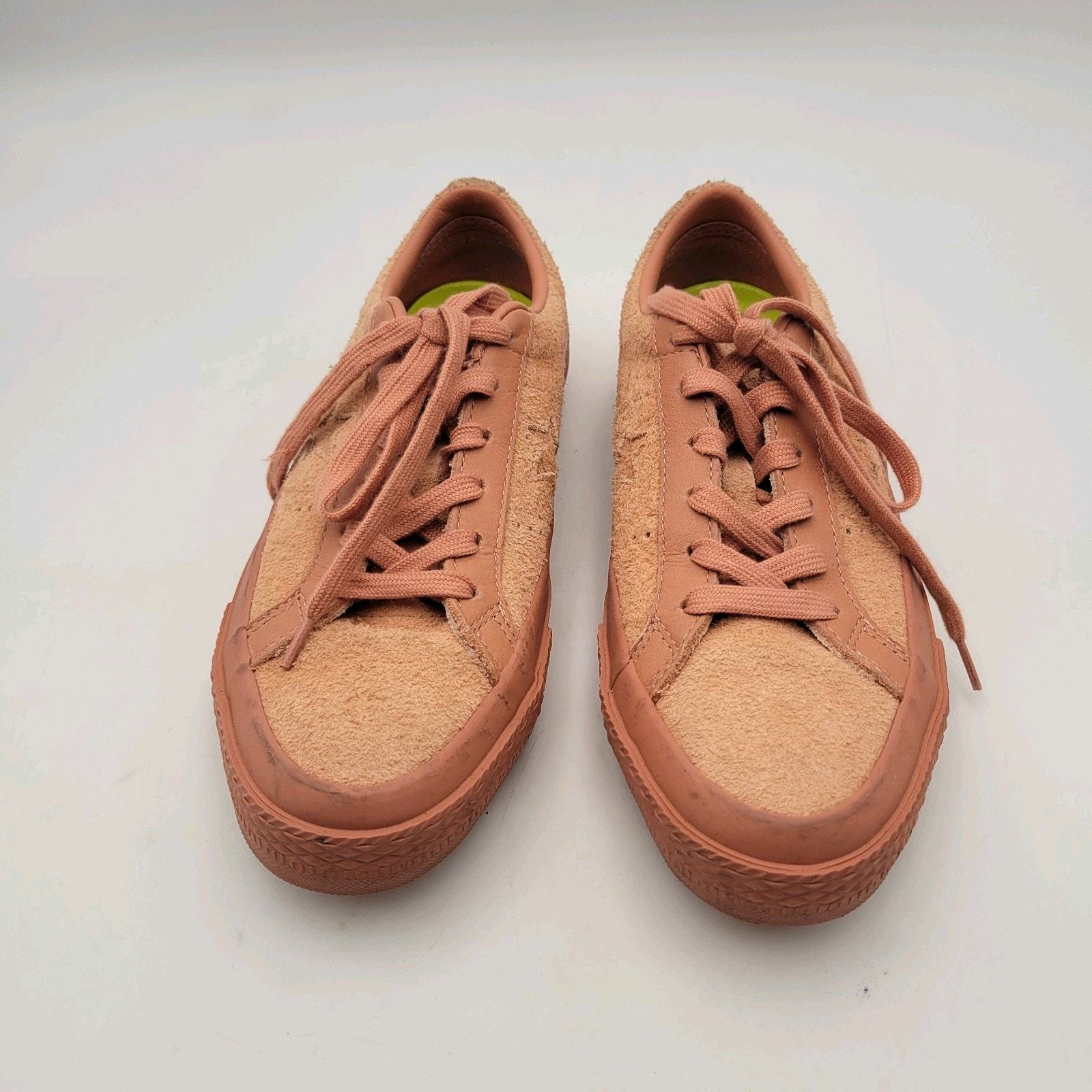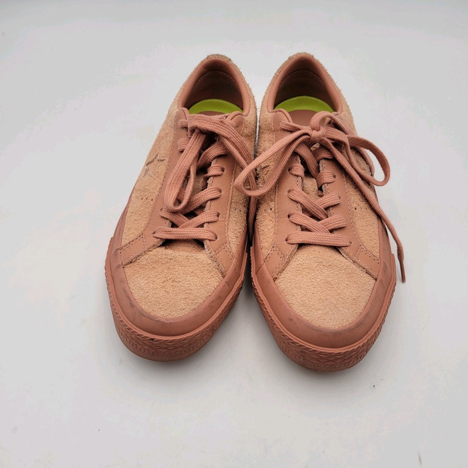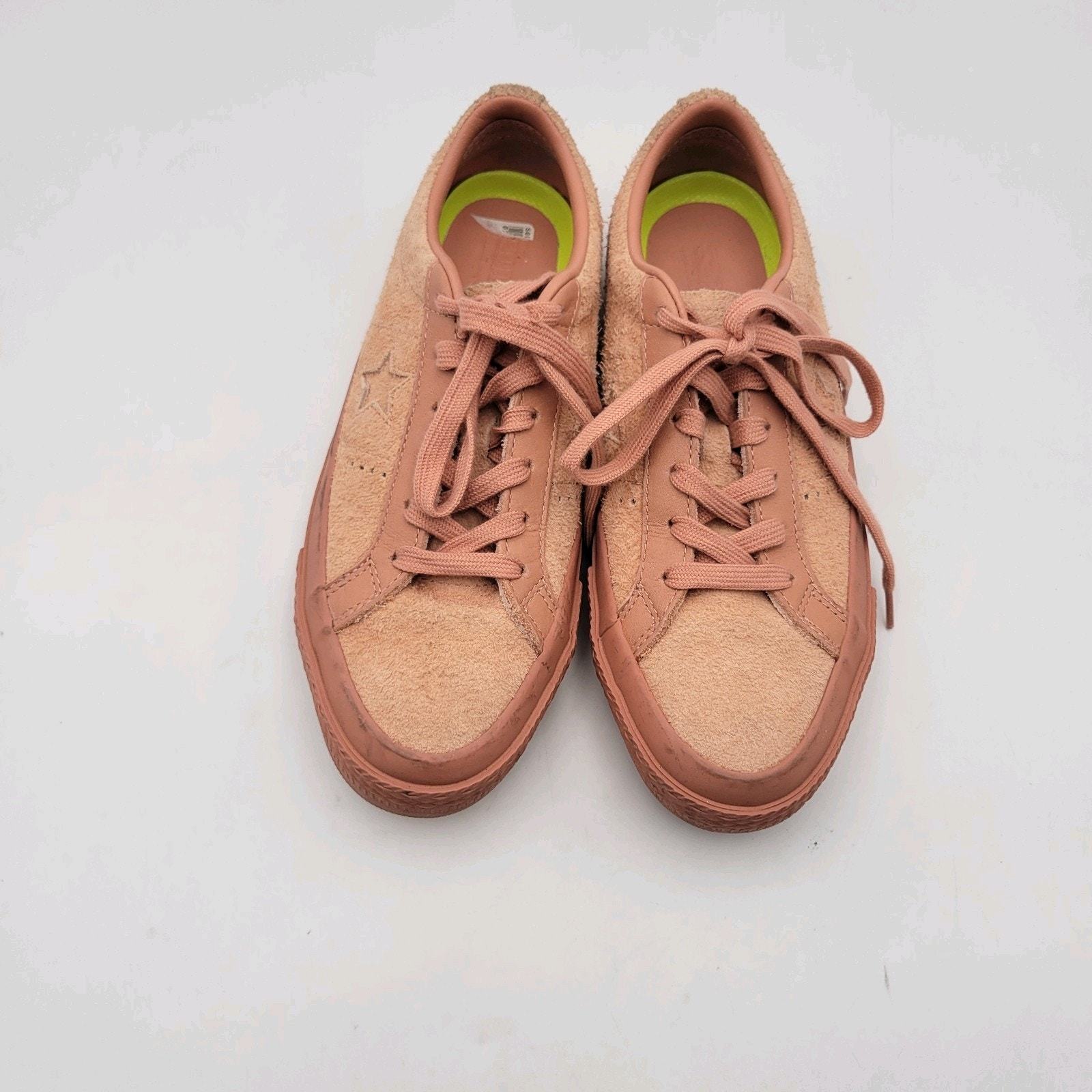 The product is a unisex Converse One Star Ox shoe in Pink Blush color, featuring a solid pattern and lace-up closure. Fast Shipping