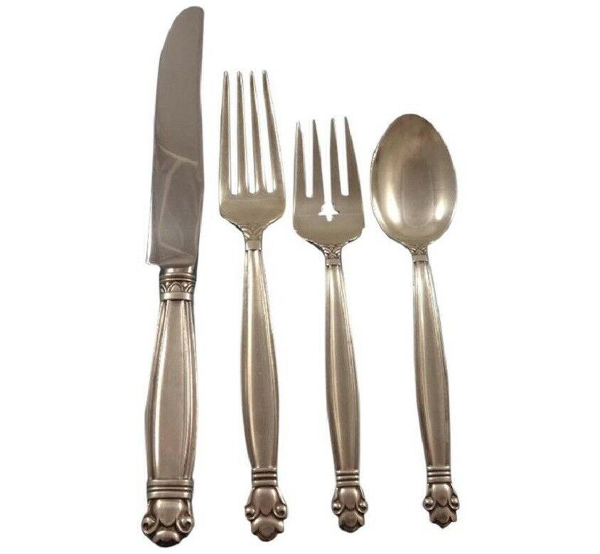 COMPLETE FLATWARE SETHOSTESS HELPERSHOLLOWWARE / TEA SETSMUSEUM QUALITY/FIGURAL SILVERFINE ESTATE VINTAGE JEWELRYMID-CENTURY MODERNSILVER FLATWARE SILVERWAREBuccellatiChristofleGeorg JensenNew Georg Jensen HollowwareNew Georg Jensen JewelryGorhamInternationalLuntMichael Aram - NewReed BartonTiffany Co.TowleWallaceWhitingPLACE SETTINGS