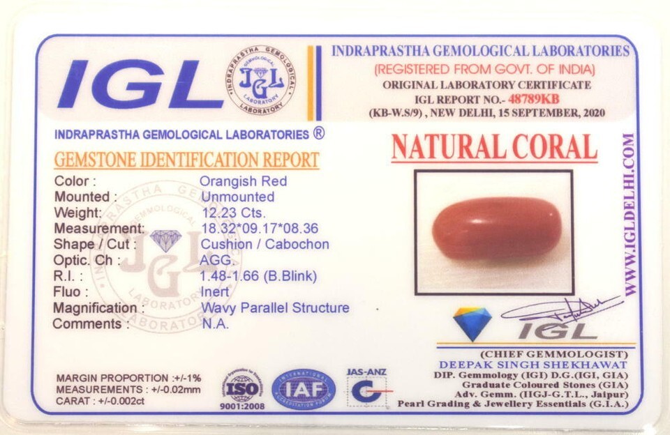 - Coral / Red coral - 12.23 carats - Italian - Lab Certified