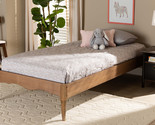 Features: Constructed from rubberwood, MDF wood, and LVL Walnut brown finish Ash walnut finish Saber legs Slats eliminate the need for a box spring Solid and Quality Construction Set Includes: One (1) Twin Size Bed Frame