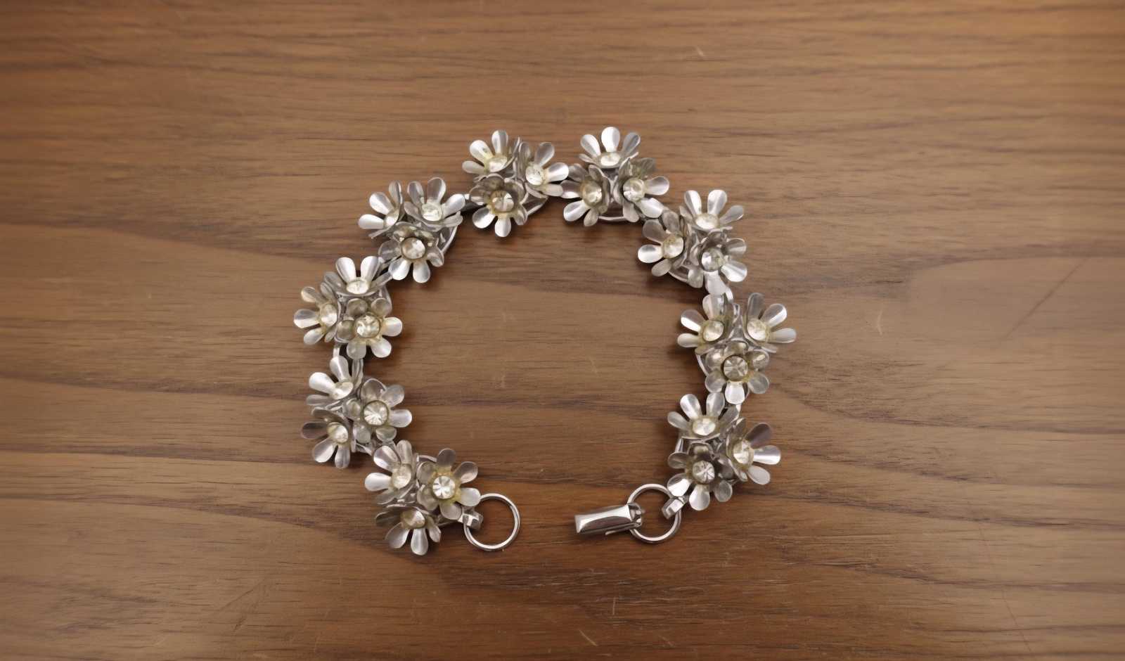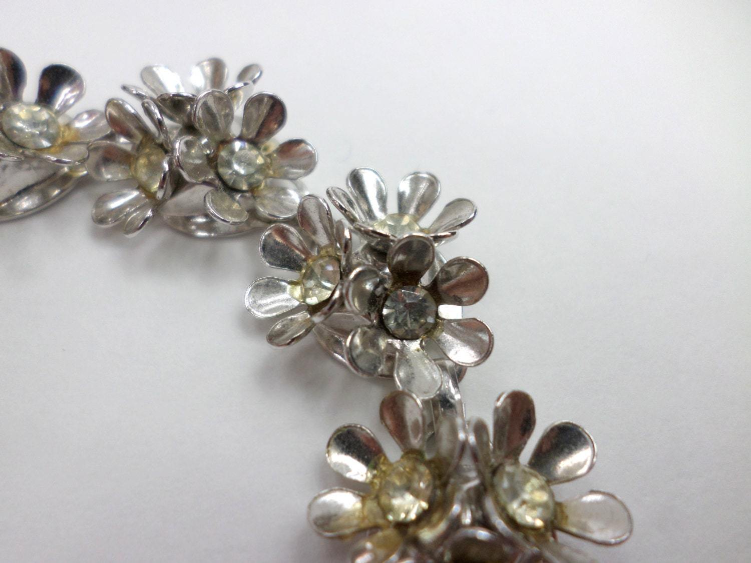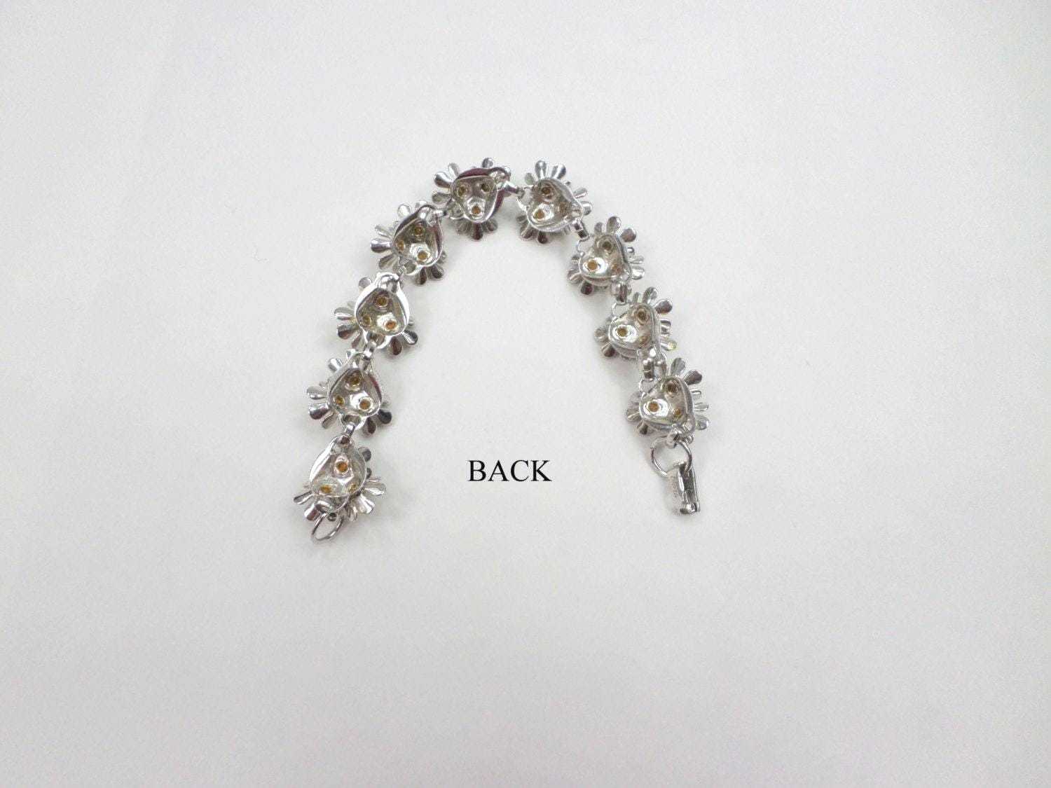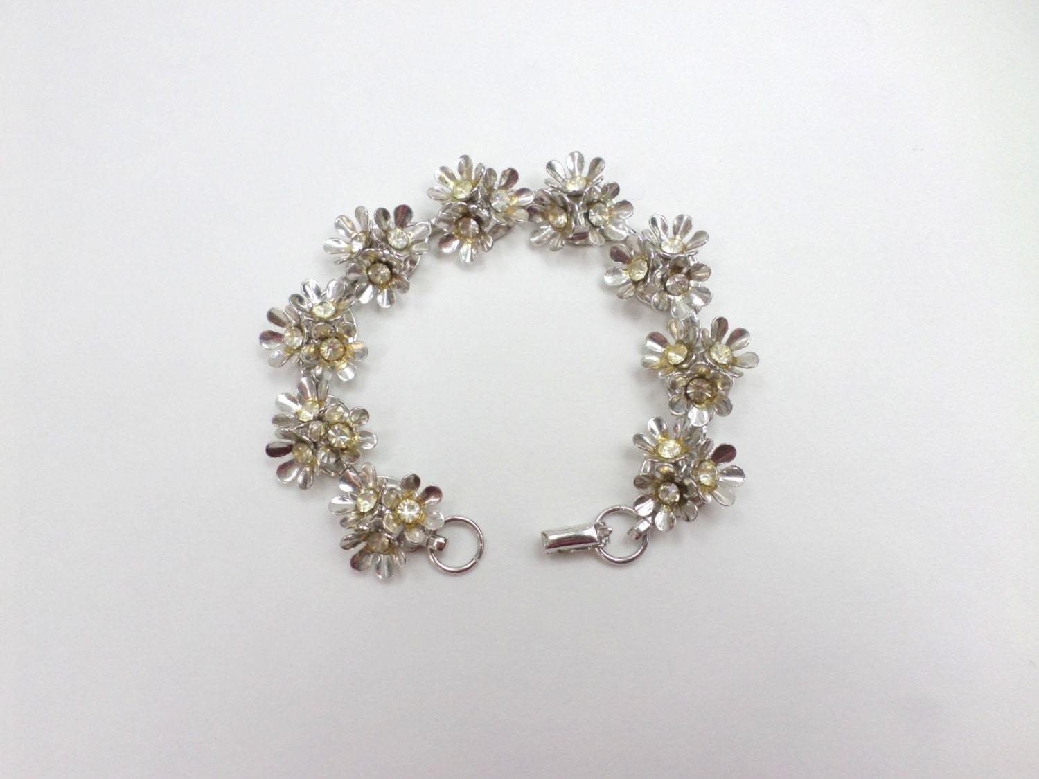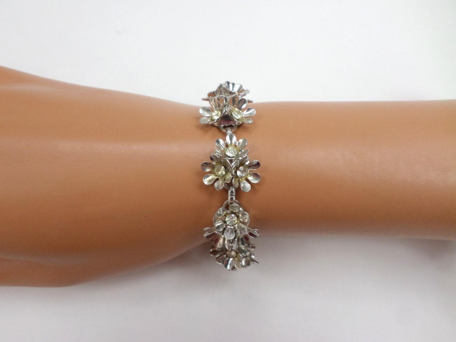 - Coro Silver Flower & Rhinestone Link Bracelet