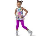Girls Mediium (Size 8-10) Bust: 27-29" Waist: 24-25.5" Hips: 28-31" Girth: 46-49" Inseam: 25-27" Multi-colored hologram print silky stretch and fuchsia spandex capri unitard with front lining and adjustable straps. Attached silver foil belt and collar. Buckle and binding trim. Like new from a smoke-free and pet-free home. Size: Girls M Condition: Pre-Owned Like New