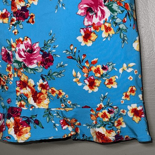 Chic floral pencil skirt by Counterparts. Features vibrant blue with red and yellow flowers. Ideal for stylish outings.