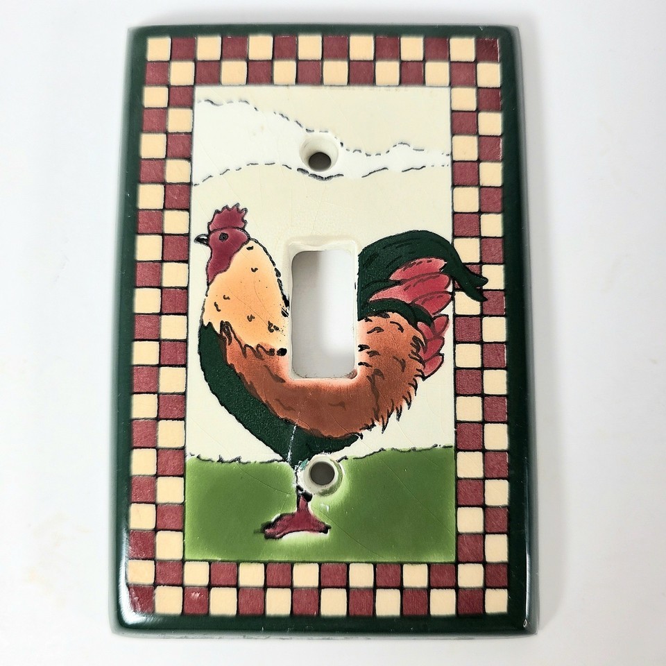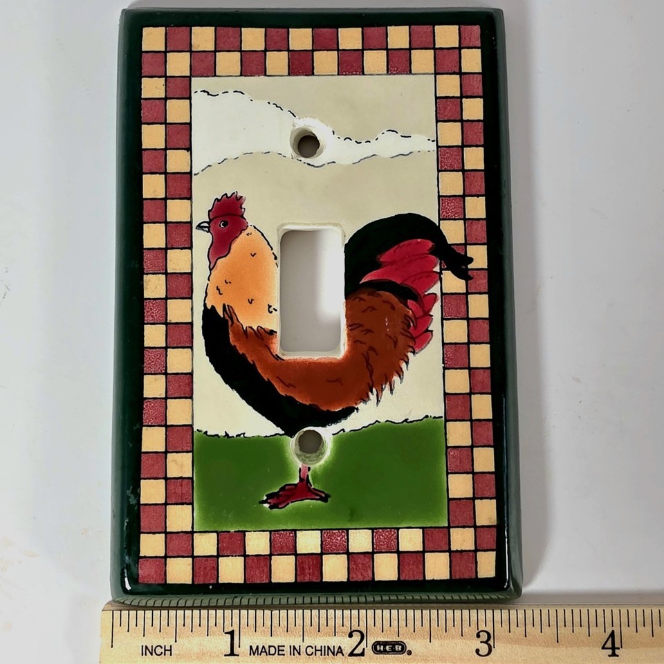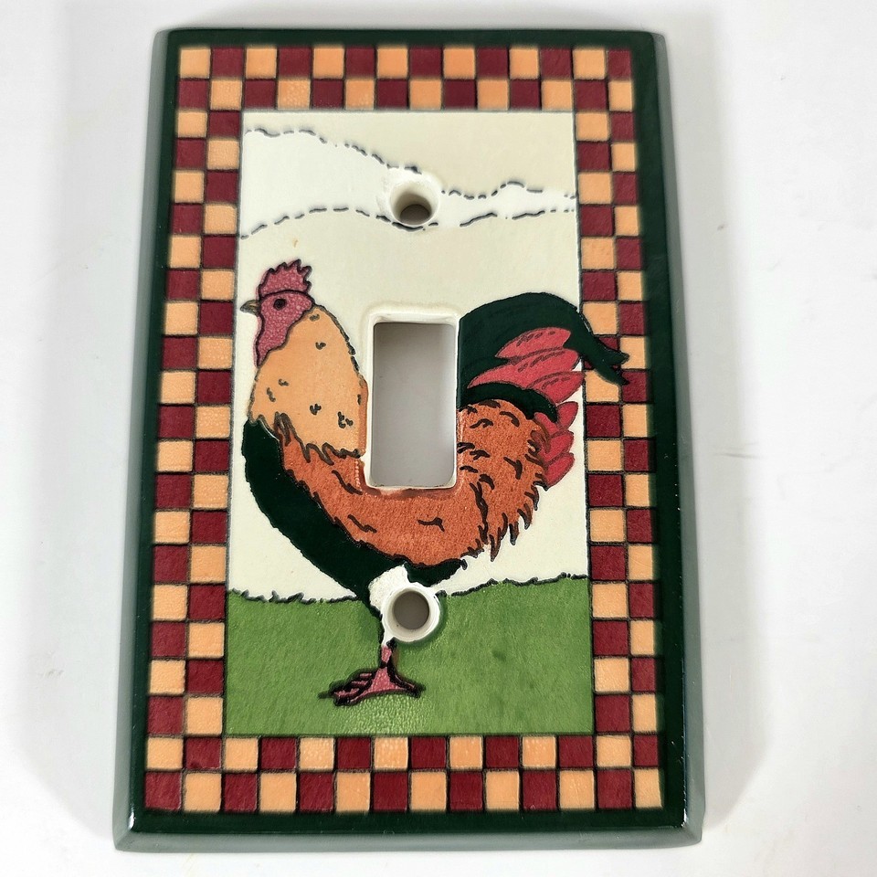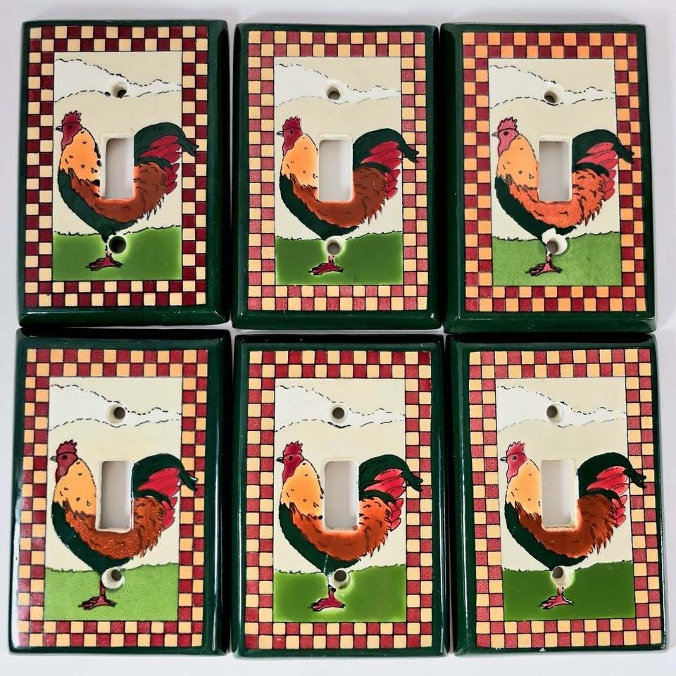 - COUNTRY KITCHEN FARM HAND PAINTED ROOSTERS CHICKEN SWITCH PLATES SET OF 7 RARE
