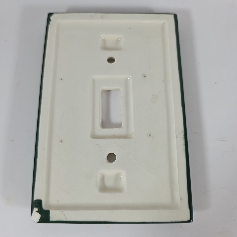 Condition Preowned, Good Condition. The DOUBLE SWITCH plate has minor chip on lower left screw hole, not noticeable when screw is placed. Smooth scratch on a 1 toggle face toggle switch plate. 1 single toggle switch plate has a small right bottom underside chip on the right corner (doesn't affect the way it looks when installed), some crazing on undersides of plates, not all. Look Close At Pictures for details. Beautiful Vintage switch plates. Ship Fast!