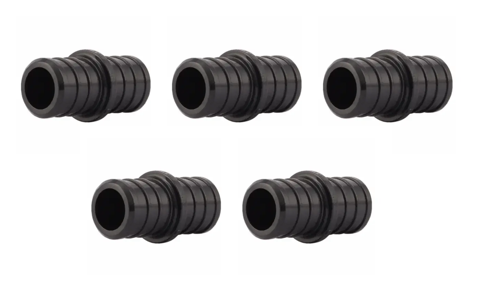The SharkBite UP016A5 poly alloy barb coupling is a high-performance, lead-free fitting designed for secure, leak-free connections in PEX-A, PEX-B, and PEX-C plumbing systems. Constructed from durable poly alloy with a precision-machined barb design, it provides superior grip on PEX tubing under high pressure and temperature conditions. The coupling?s dual-barb configuration ensures a tight seal on both ends, preventing slippage even under thermal expansion and contraction. Rated for a maximum working pressure of 200 psi and temperatures up to 200F, it is certified to ANSI standards and suitable for both hot and cold potable water systems in residential and commercial applications. The 5-pack offers economical coverage for multiple connection points.