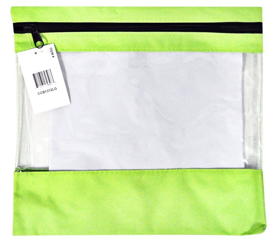 Craft Caddy Bag 13 Inch By 12 Inch Lime Green. Easily see all your sewing notions, tools, and projects because of the transparent vinyl. Stadium friendly. Clear plastic body with black polyester trim. Zipper closure. Dimensions: 13 inches X 12 inches. CHK-CCB1312LG