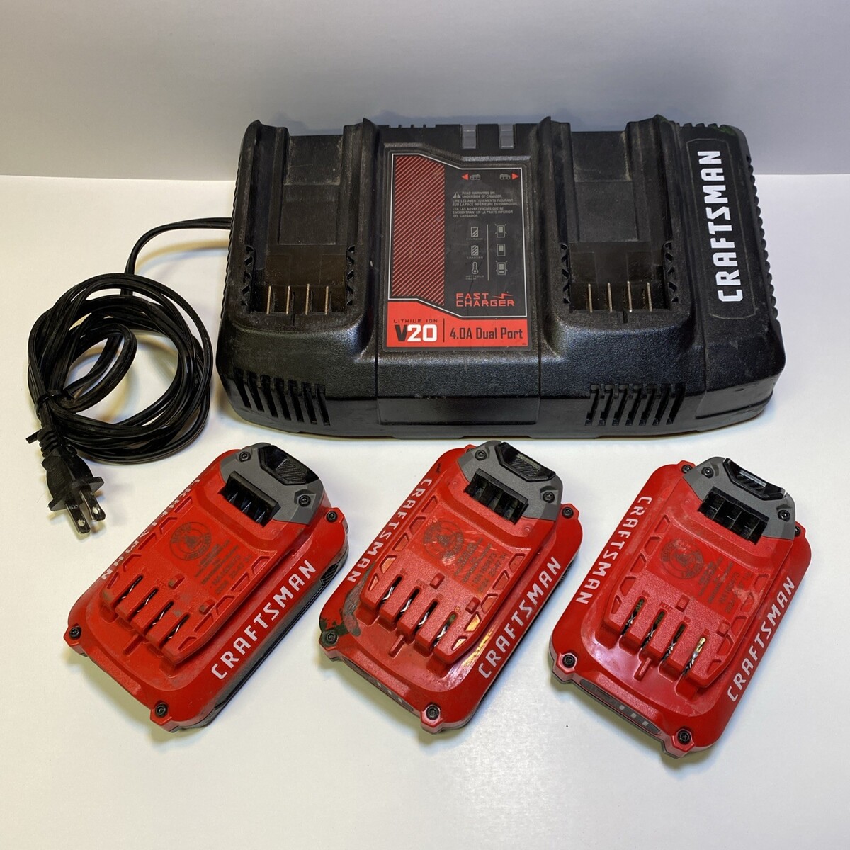 Craftsman CMCB124 4.0A V20 Dual-Port Battery Charger & (3) CMCB2011 Batteries