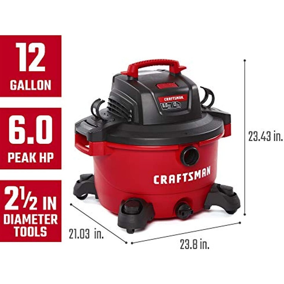 - CRAFTSMAN CMXEVBE17594 12 Gallon 6.0 Peak HP Wet/Dry Vac, Portable Shop Vacuum