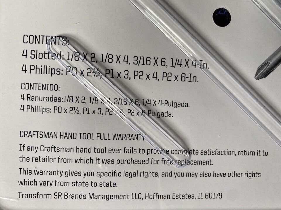 - Craftsman Screwdriver Set 8 Piece Slotted Flat and Phillips 9-47136 Easy to Grip