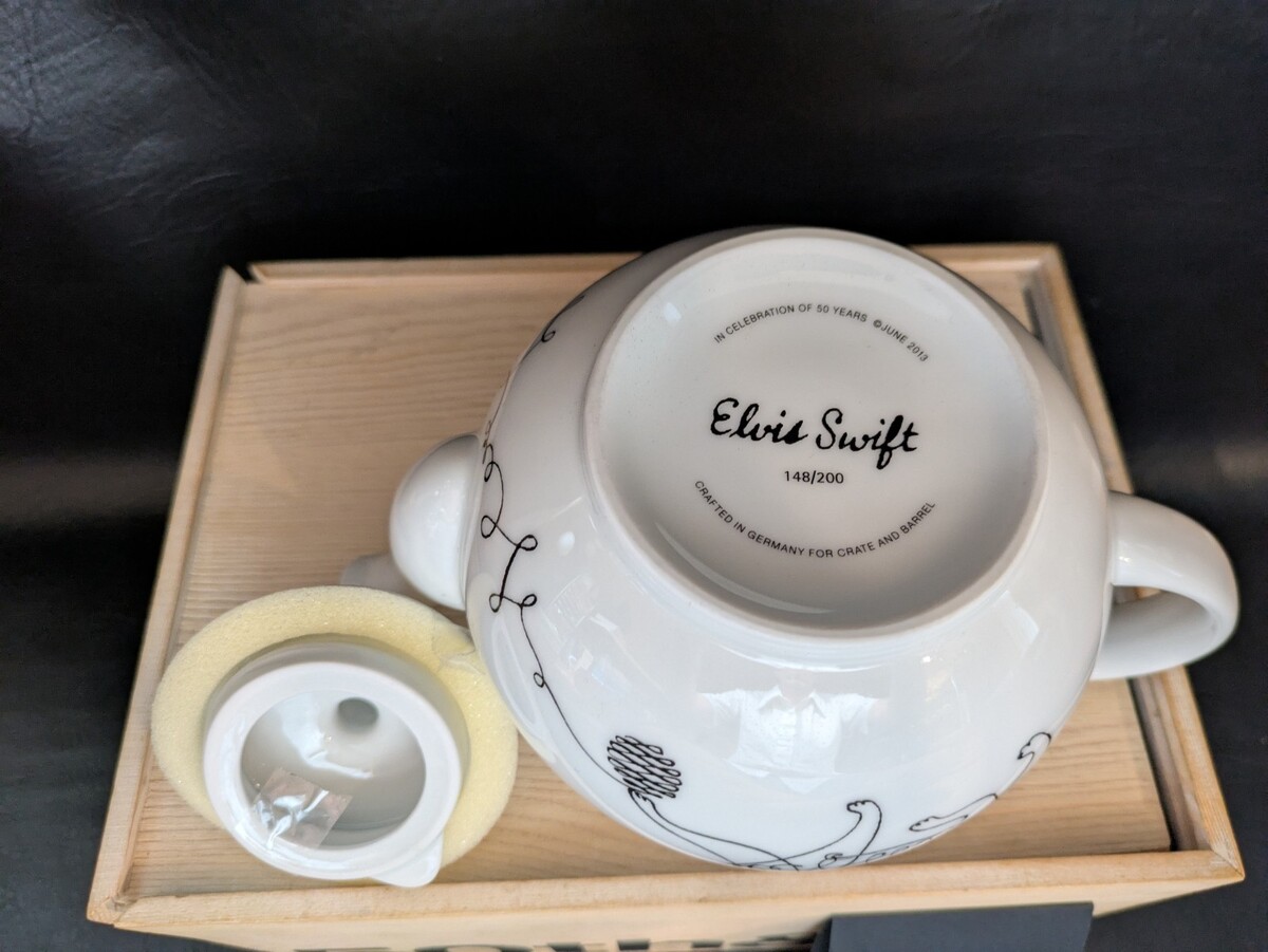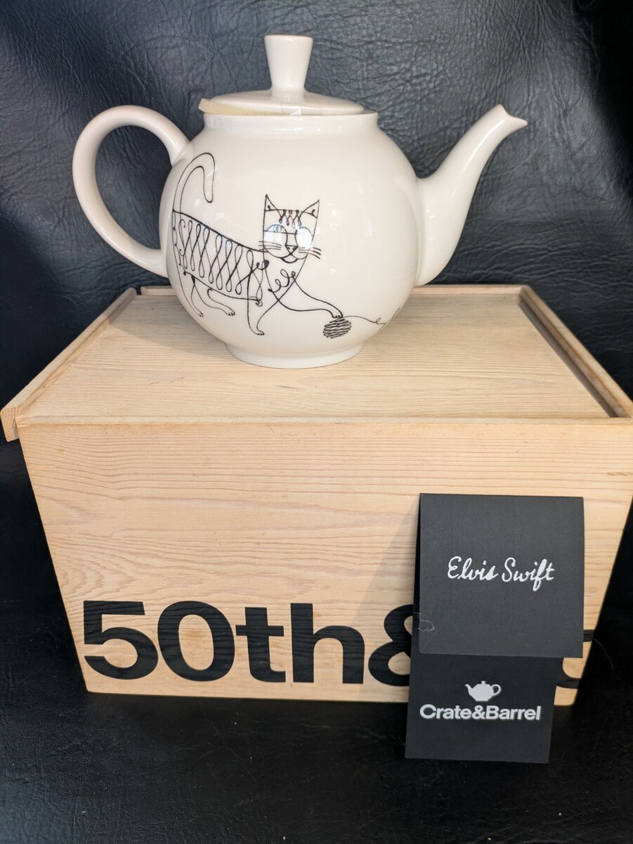 - Crate & Barrel Elvis Swift Cat Dog Teapot 7 of 200 50th Anniversary Wood Box NEW