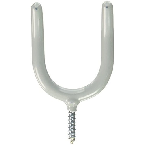 2 Pack, Screw In Tool Hook, Made Of Rust Resistant, Zinc Plated Steel With No-Mar Vinyl Cushion Coating, Dimensions: 4.0"L x 0.3"W x 2.3"H, Carded. This screw in storage hook is very sturdy and easy to install.