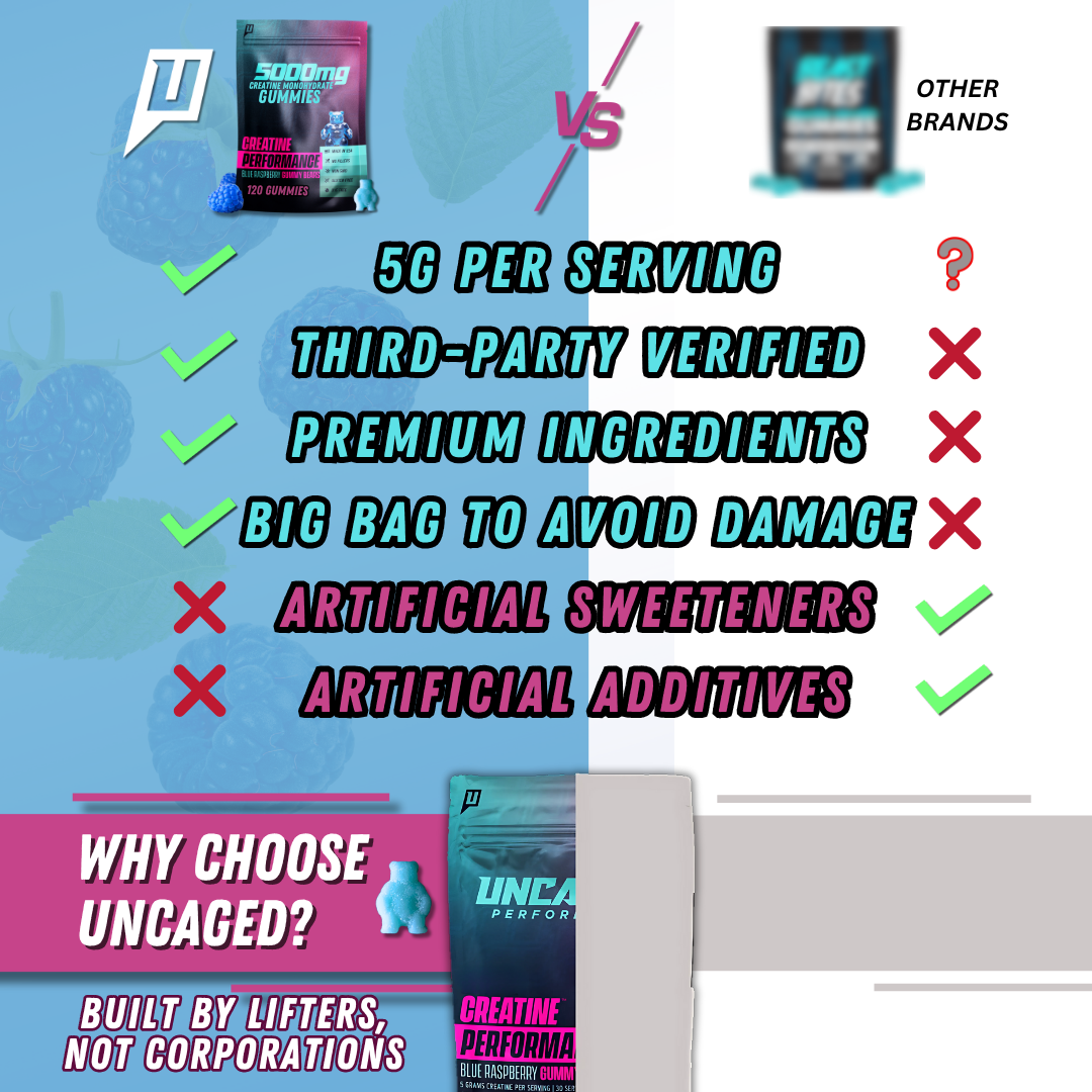 ? Upgrade your workout routine today?with the tasty, powerful, and trusted support of Uncaged Performance Creatine Gummies!