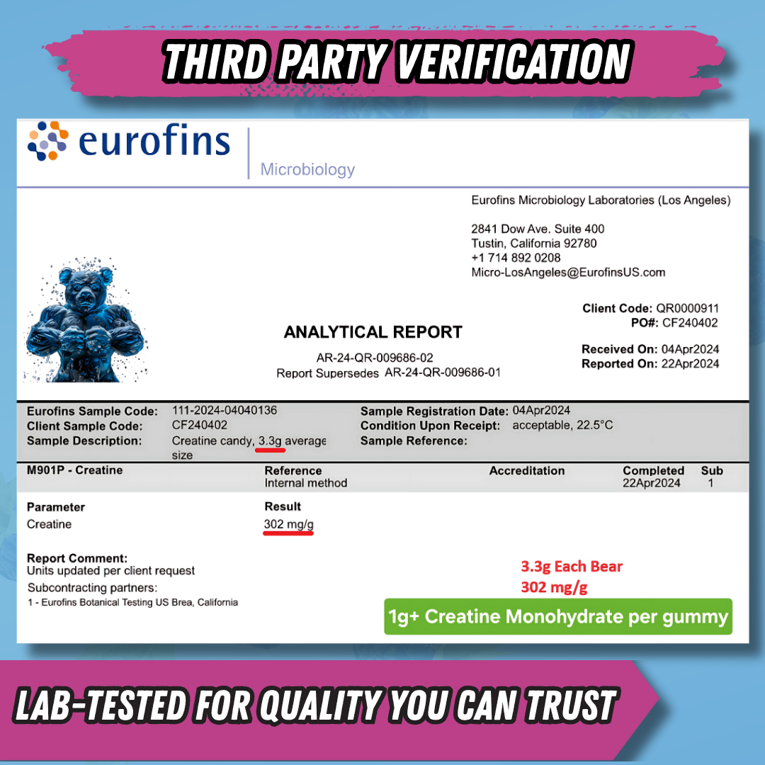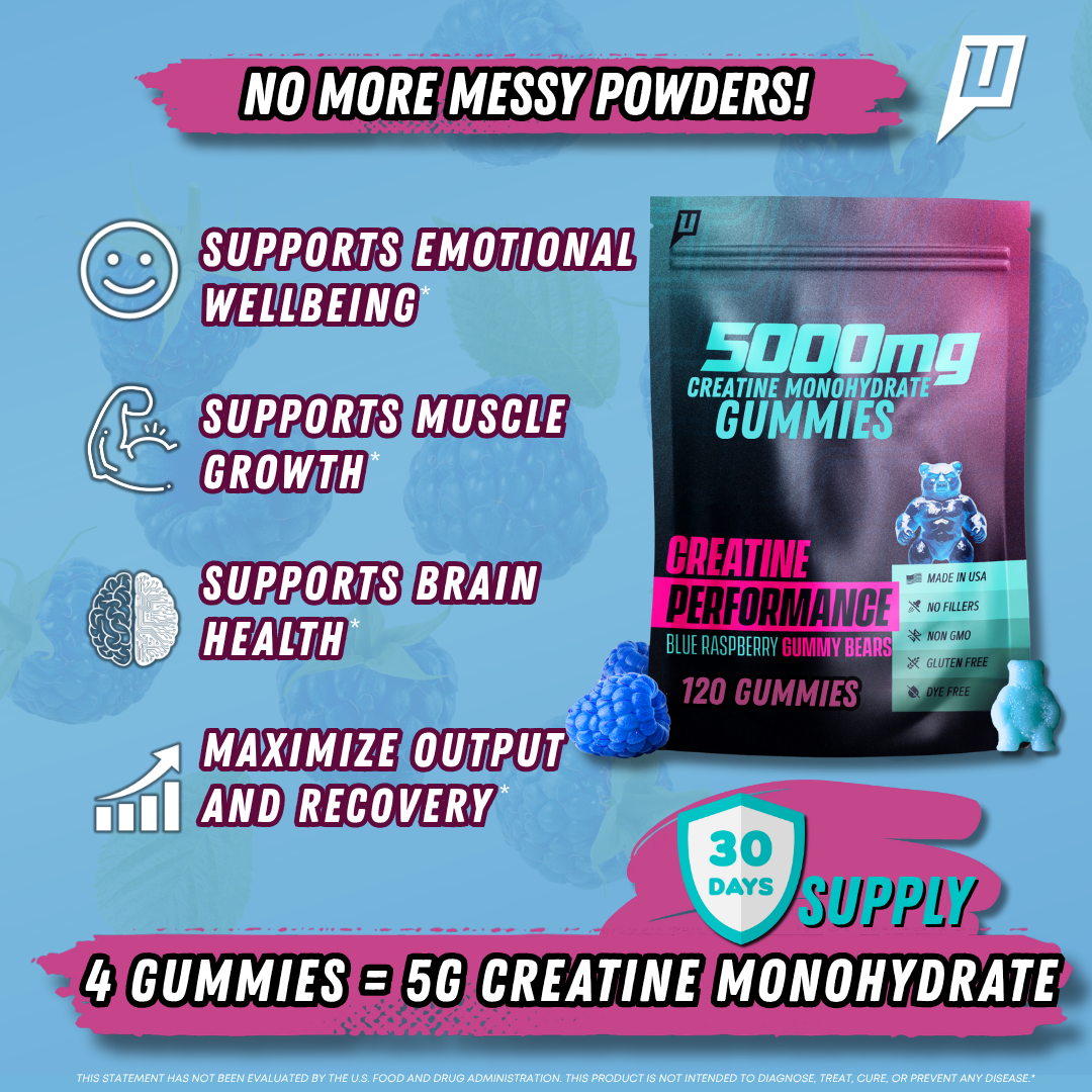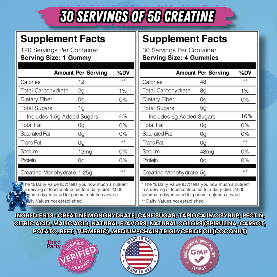 - Creatine Monohydrate Gummies, 5g Creatine 30 Servings, Lab Verified, Made in USA