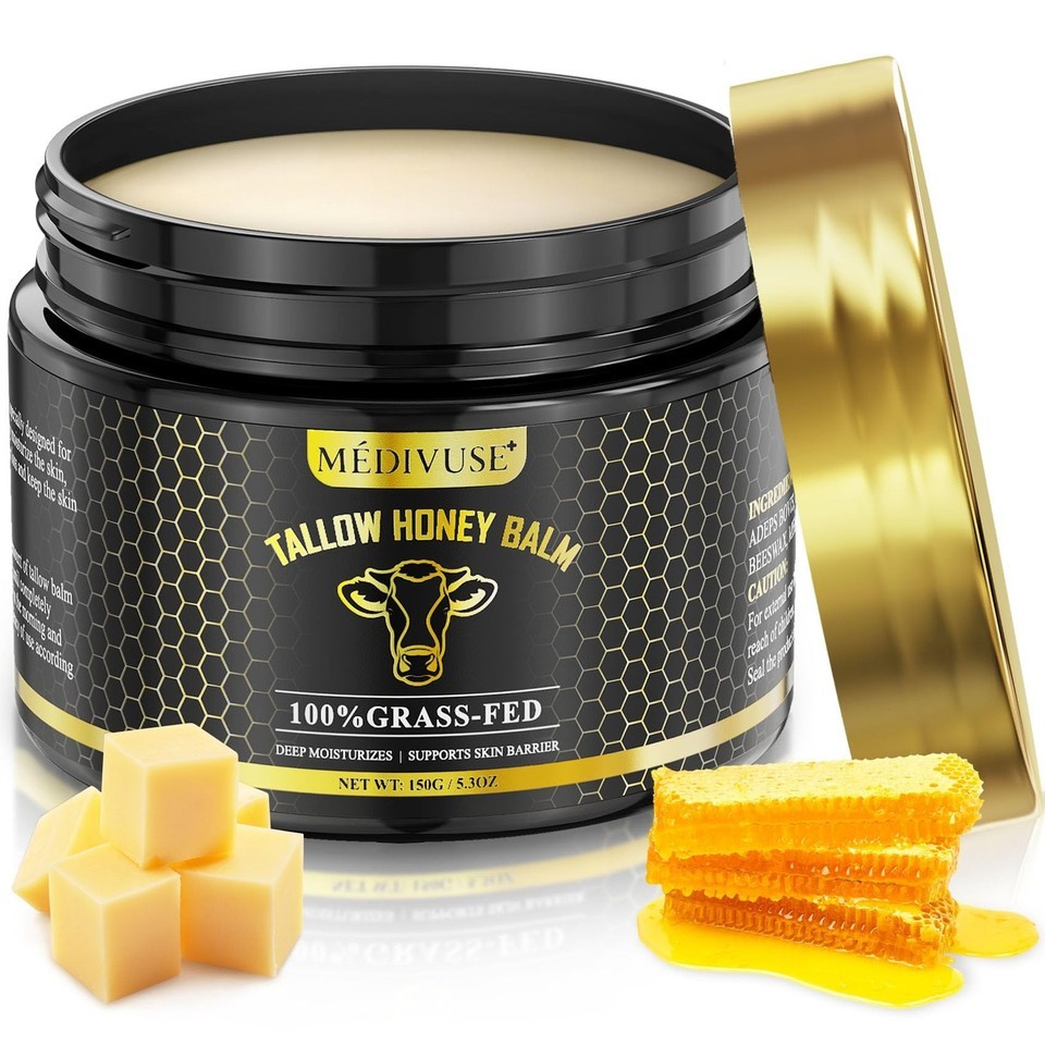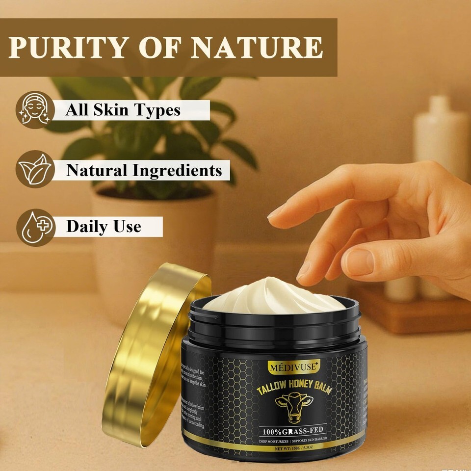 Hidratante nutritivo: El balsamo de sebo y miel es rico en vitamina E y aceite de oliva, que puede penetrar profundamente en la piel, proporcionar abundante hidratacion y tener un efecto hidratante y calmante, haciendo que la piel este húmeda y radiante