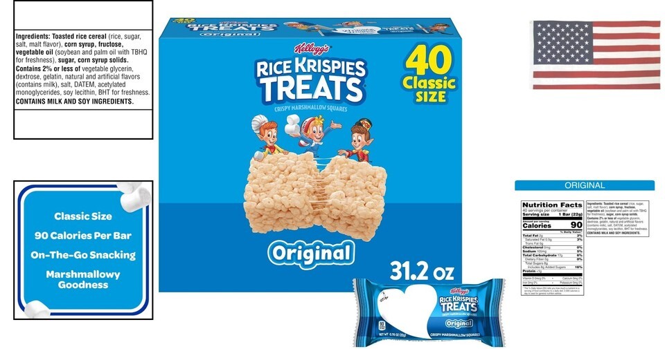 Crispy Marshmallow Squares | | 40 Snack Bars | 31.2 oz Box | Made with Rice Krispies Marshmallows | Low Fat | 90 Calories/Bar