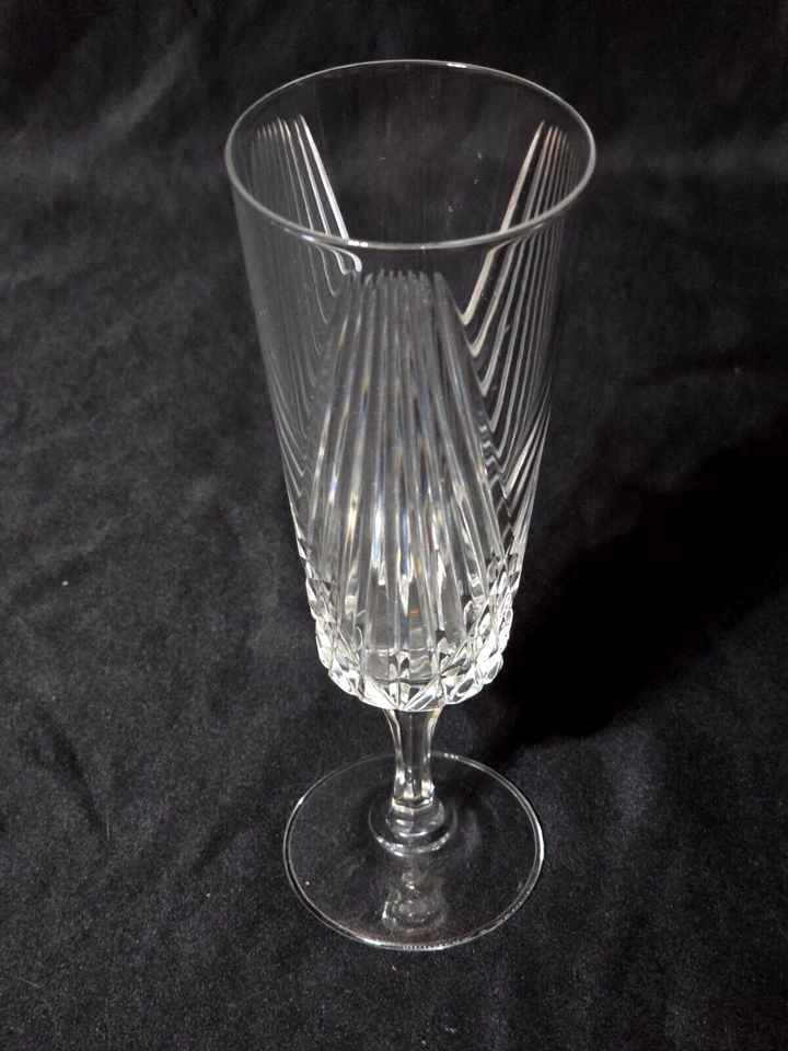 Beautiful Cristal D'Arques Combourg cut crystal champagne flute in near mint condition, no damage or signs of wear. Stands 6.75" tall and looks to hold about 6 ounces. Single replacement flute.