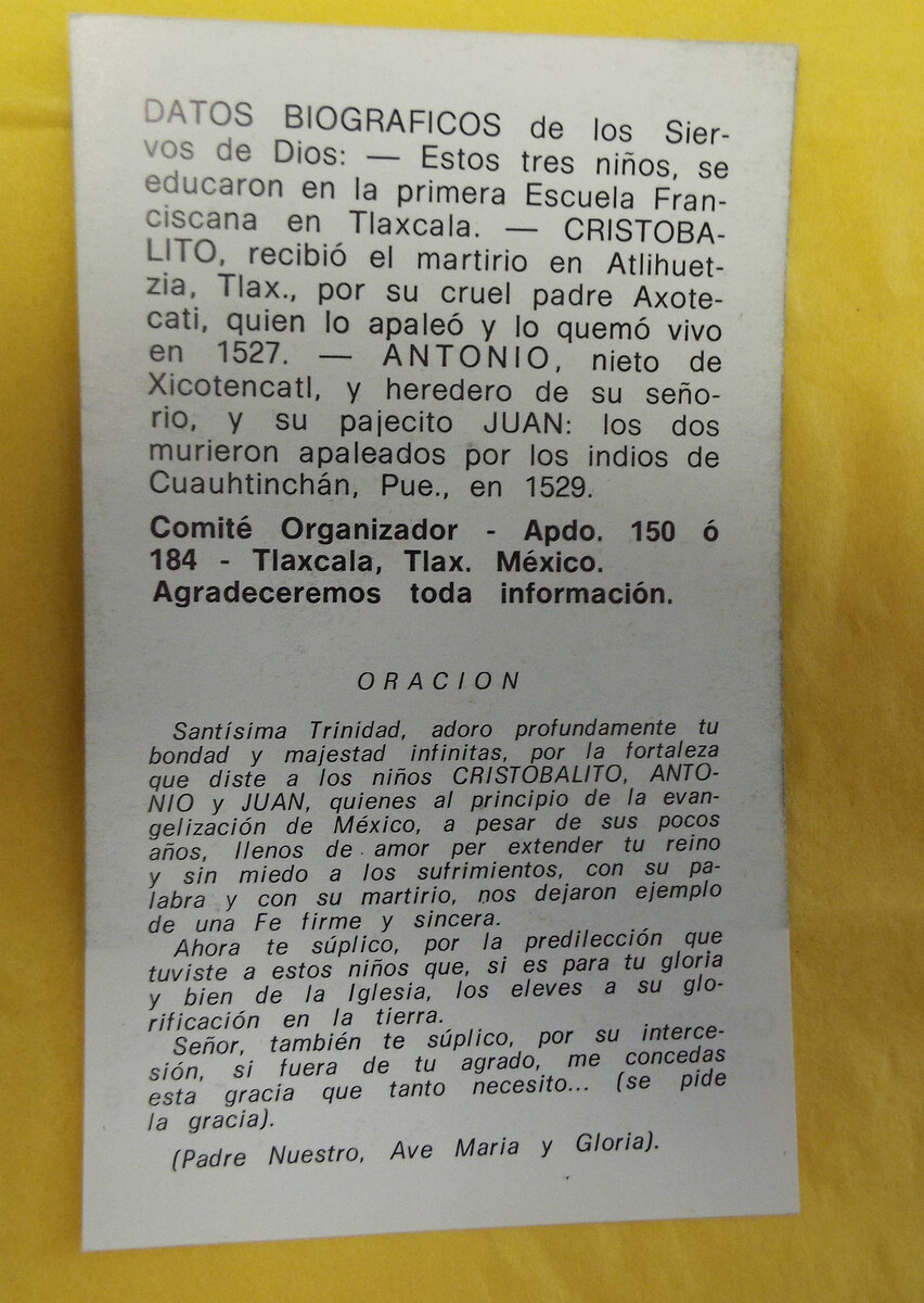 Cristobalito, Antonio & Juan Siervos de Dios, Prayer Card/Estampa en Español