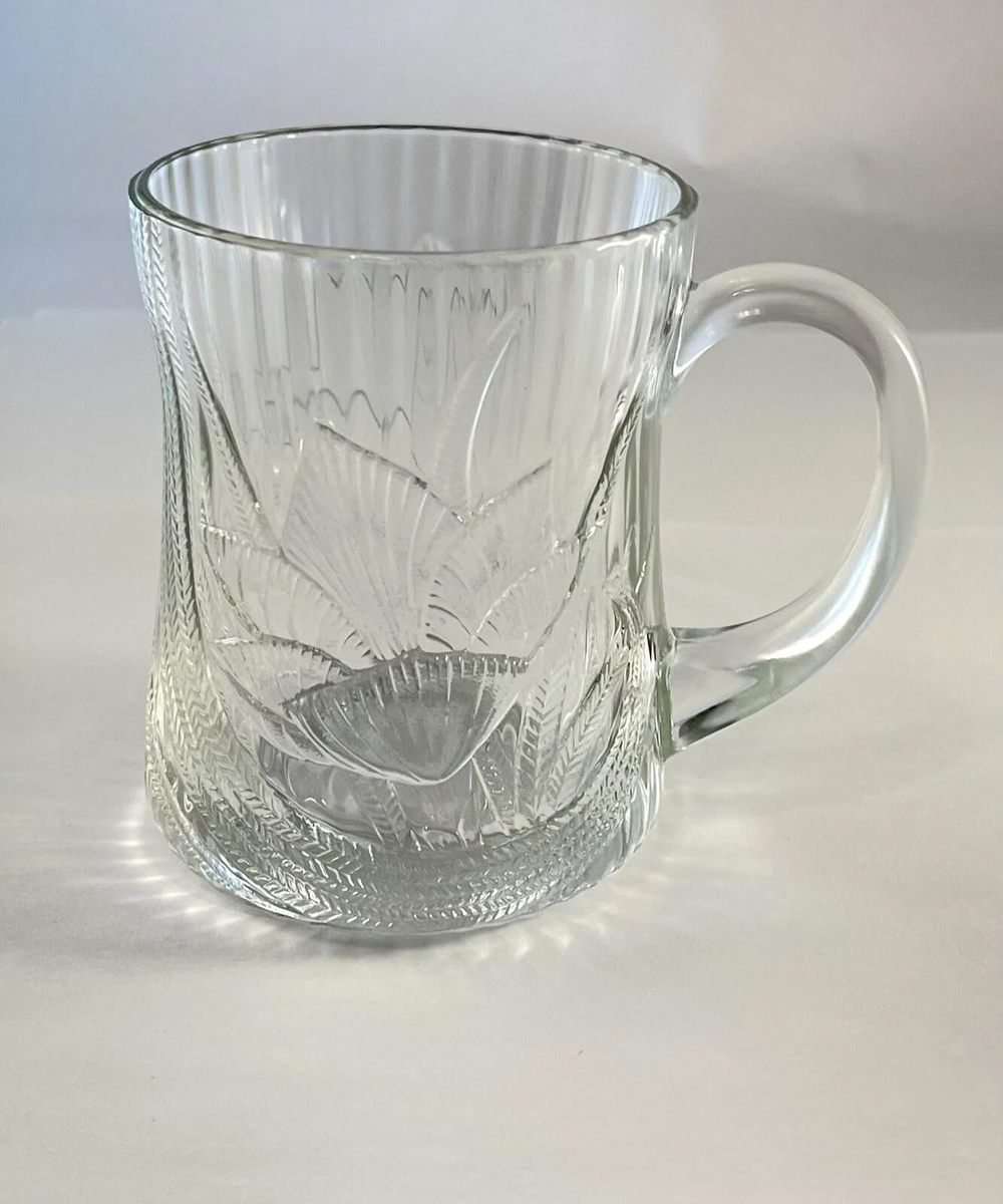 Product description: Add timeless elegance to your beverage service with these Crocus glass mugs from Arcoroc France. Standing 4 inches tall, these versatile mugs are perfect for serving your favorite hot coffee, tea, or other beverages with style. The classic Crocus pattern combines traditional design elements with practical functionality, making these mugs suitable for both daily use and special occasions. Crafted from durable, transparent glass, these mugs allow you to appreciate the rich colors of your beverages while providing a comfortable grip. The set is ideal for entertaining guests or enhancing your family's everyday dining experience. These dishwasher-safe mugs offer both beauty and practicality, featuring generous capacity and sturdy construction that stands up to regular use. Whether you're enjoying a morning coffee or afternoon tea, these elegant mugs elevate your beverage experience while adding a touch of sophistication to your table setting.