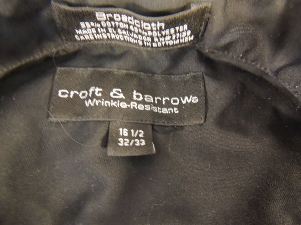 Croft and Barrow Wrinkle-Resistant Dress Shirt Men's 16.5 32/33 Broadcloth Size: 16.5 32/33 Color: Black Condition: Used Defects: none Thank You for looking at my Store. I am a United States Army Veteran and our Store is Veteran Owned and we count on an honest transaction. We have a no hassle return Policy. It?s really simple if you don?t like it please return the item and I will issue you a refund. I have quickly learned that Customer Satisfaction is the number one Priority. My Store is open for Business and I invite everyone to take a quick look at what I have...Just click here and see all that I have http://stores.ebay.com/allamericanauctions2015 . We now ship every day to include SATURDAY AND SUNDAY? which means our carrier service now picks up 7 Days a week. If you BUY TODAY? your ITEM will get out no later than 72 hours after your purchase. It will have the best head start as it will be processed at the Denver Hub within 72 Hours of your purchase. Even if you buy at night your Item will be processed the next two mornings and will be at the Denver Hub WITHIN 72 HOURS. We have Incredible FAST SHIPPING and again WE NOW SHIP ON SATURDAY AND SUNDAY. If you have any questions please MESSAGE ME... If you have any CONCERNS please MESSAGE ME. If you have any ISSUES with your Item please let me fix it. I count on your Business and in return I will give you an Honest Auction. I look forward to doing Business with you. View more great items