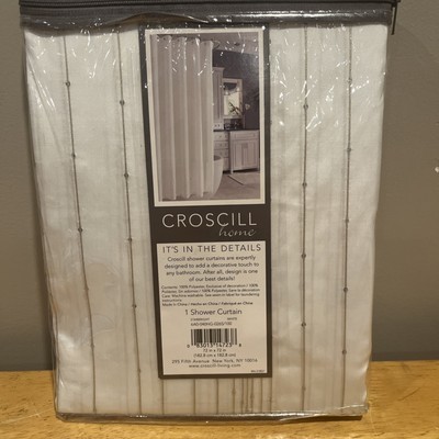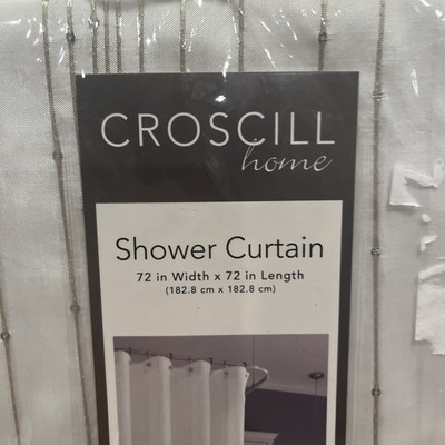 - Croscill Fabric Shower Curtain Starbright Silver Shiney Stripe Embroidery 72x72"