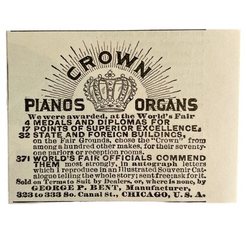 Crown Piano Organ Worlds Fair 1894 Advertisement Victorian Instrument 2 ADBN1ss