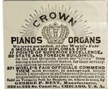 Crown Piano Organ Worlds Fair 1894 Advertisement Victorian Instrument ADBN1ss