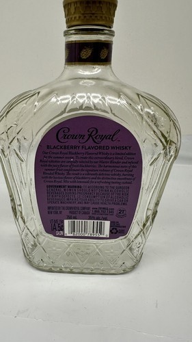The "Crown Royal Black Berry 750ml Bottle Purple Label" is a collectible advertising piece featuring the Crown Royal brand. The bottle is clear with a purple label, emphasizing the black berry flavor within. This original bottle design showcases the theme of distillery, highlighting the craftsmanship and quality associated with Crown Royal products. Perfect for collectors or fans of Crown Royal looking to add a unique piece to their collection.